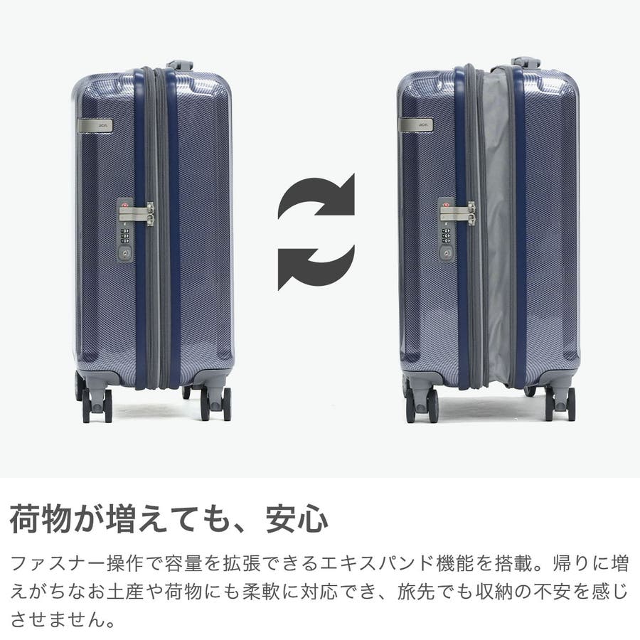・エキスパンダブル機能付きの製品は、マチ拡張時の3辺の和が機内持ち込みサイズ、預け入れ無料サイズを超える場合がございます。また、航空会社や飛行機の機種などによって規定が異なりますので、予めご確認の上お求めください。