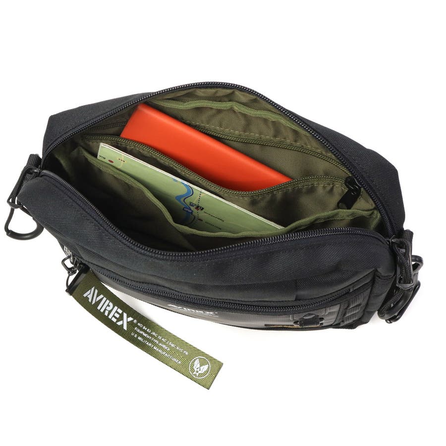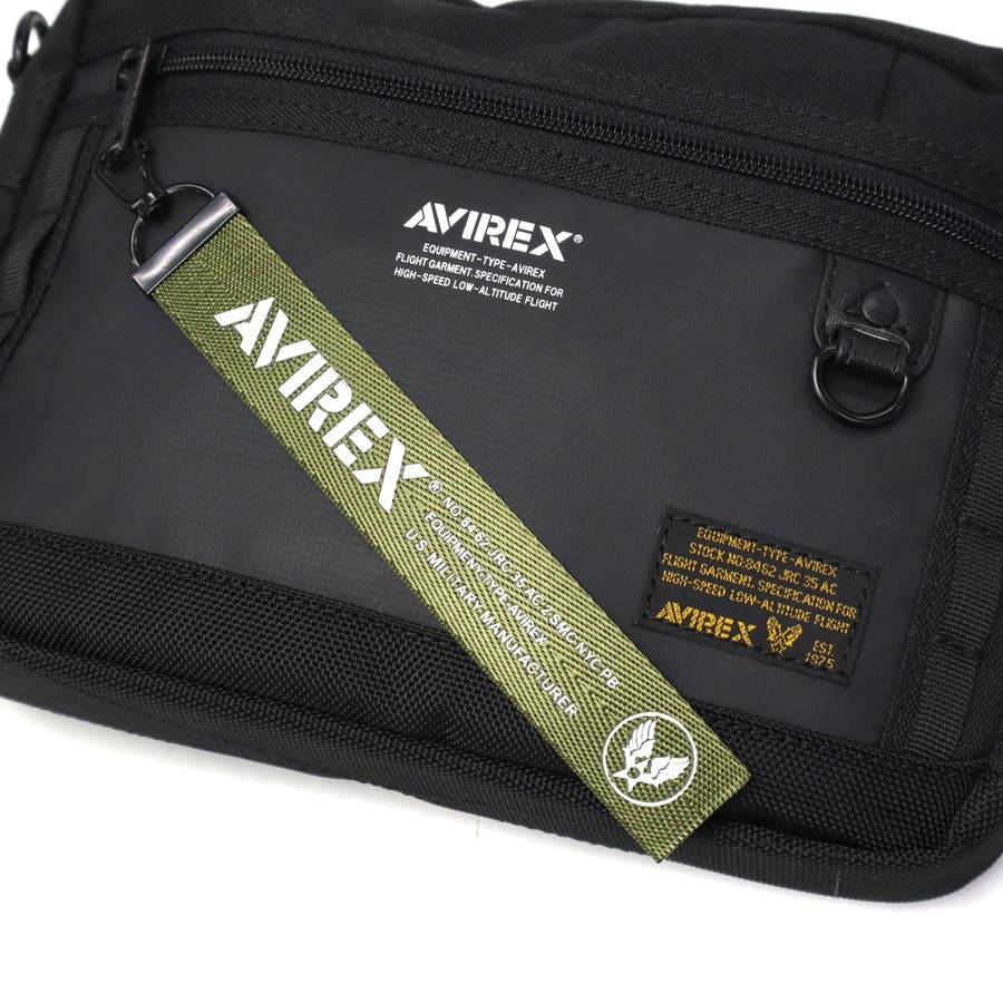 ミリタリーベースのアメリカンブランドAVIREXから、当店でしか手に入らない限定モデルのショルダーバッグが登場です。付属のリボンテープと内装生地にオリーブカラーを使用。また、正面のネームもフライトジャケットを彷彿とさせるデザインの織ネームを採用することで、ミリタリー感溢れる仕上りになっています。