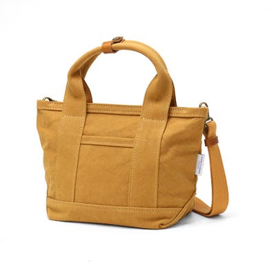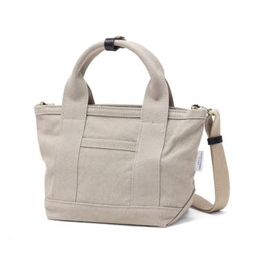 軽量で丈夫な18オンスアーミーダック帆布を使用したミニショルダートート。ハンドル付きの2WAYデザインで、手持ちでも肩掛けでもスマートに使えるのも嬉しいポイント。表面にはバイオ加工を施し、まるで長年使い込んだかのような味わい深い風合いに。ナチュラルなシワ感と柔らかな色合いが、使うほどに魅力を増していきます。