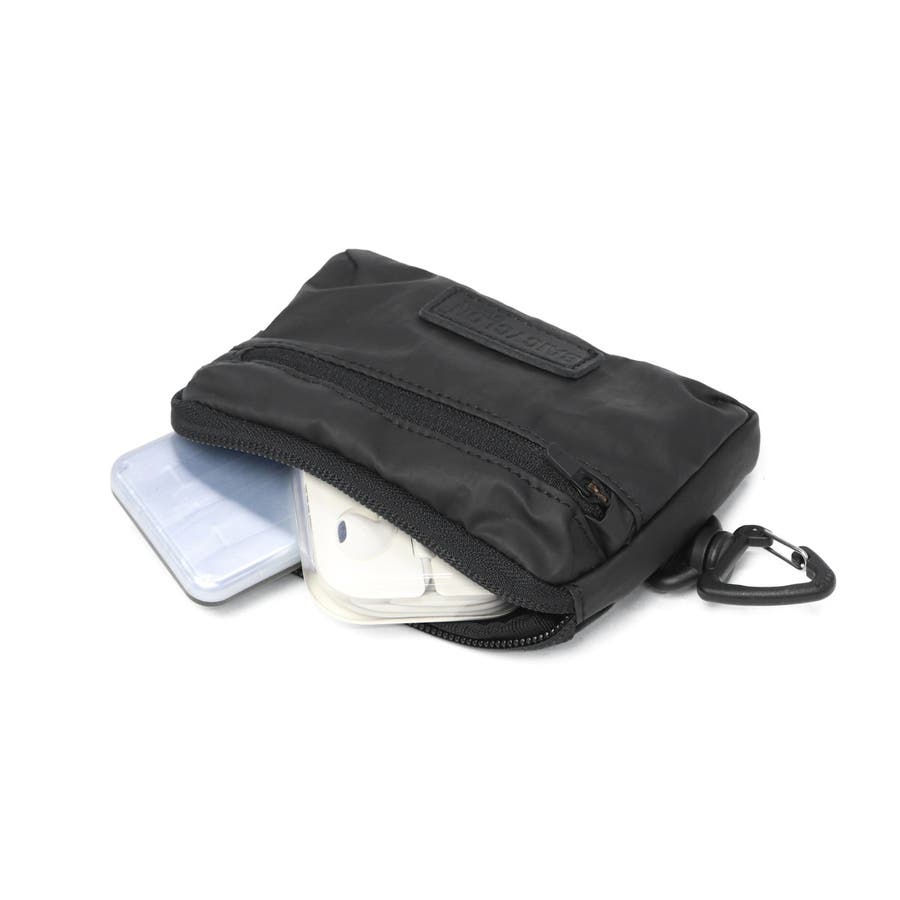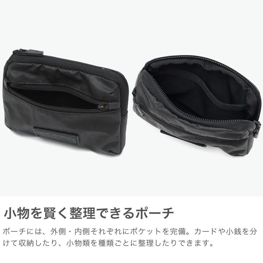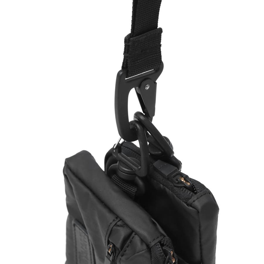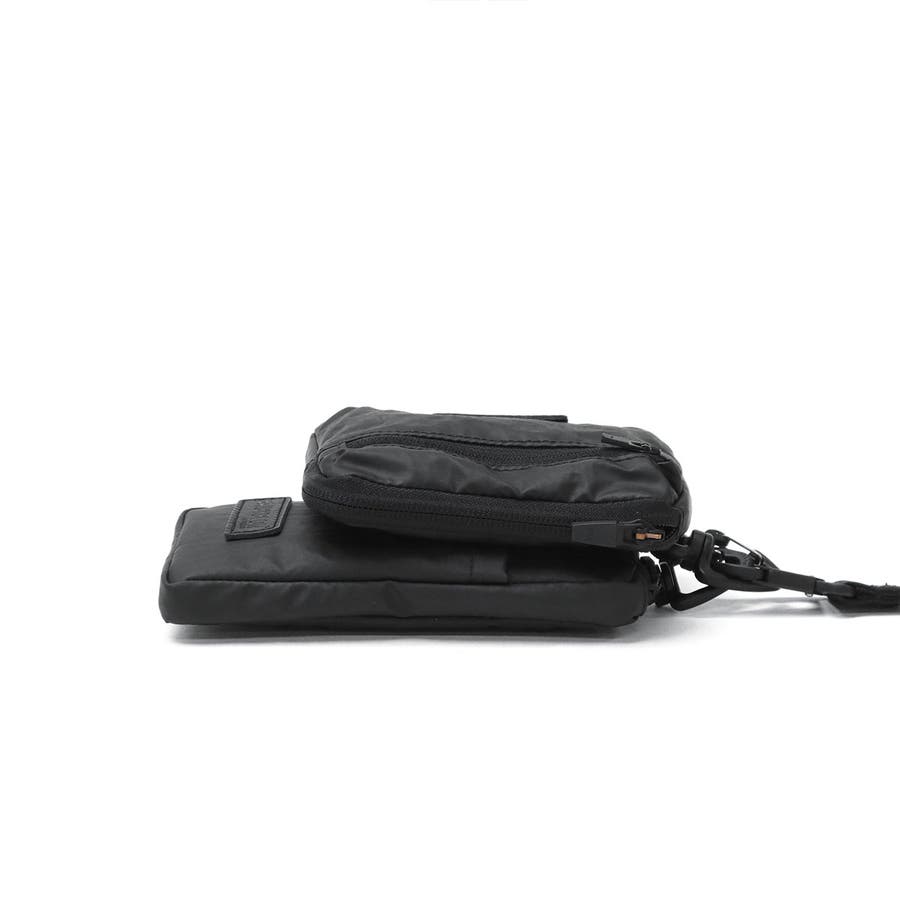 小銭や小物が収納できるポーチと、スマートフォンケースを組み合わせたショルダーポーチ。ポーチは、フックパーツを内側に隠すことで、単体でも使用可能。スマートフォンケースの裏地にはクッション性のある素材を使用し、衝撃からしっかり保護します。