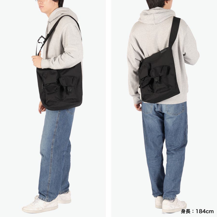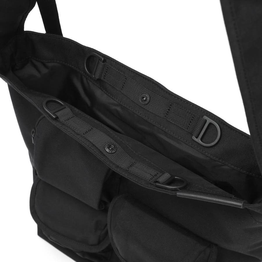 フロントに異なる形状の3種類のポケットを備えた、印象的なデザインのショルダーバッグ。A4サイズが収納できる縦型フォルムで、通勤や通学にもぴったり。耐久性・撥水性に優れたコーデュラナイロンを使用し、裏面にはAIR TIGHTNESS加工を施して水の侵入を防止。多機能で毎日の使用に便利な、アクティブシーンにぴったりのバッグです。