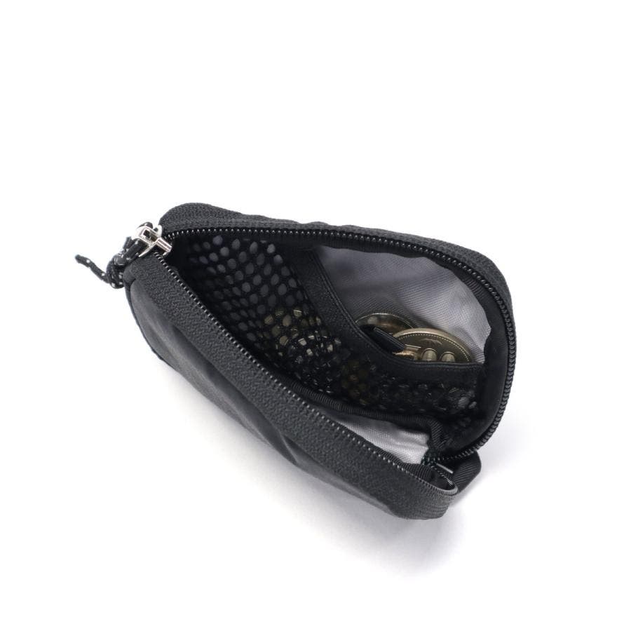 軽量性と優れた耐久性を併せ持つ、100%リサイクルのリップストップナイロンを採用したコインケース。カードや小銭を収納できるシンプルで実用的な設計です。ポケットに入れてもかさばらない手のひらサイズも嬉しいポイント。環境に配慮した素材で、ミニマルで使いやすいアイテムとなっています。