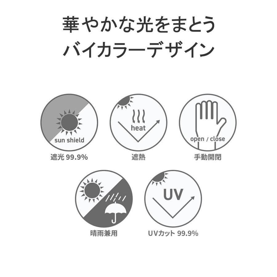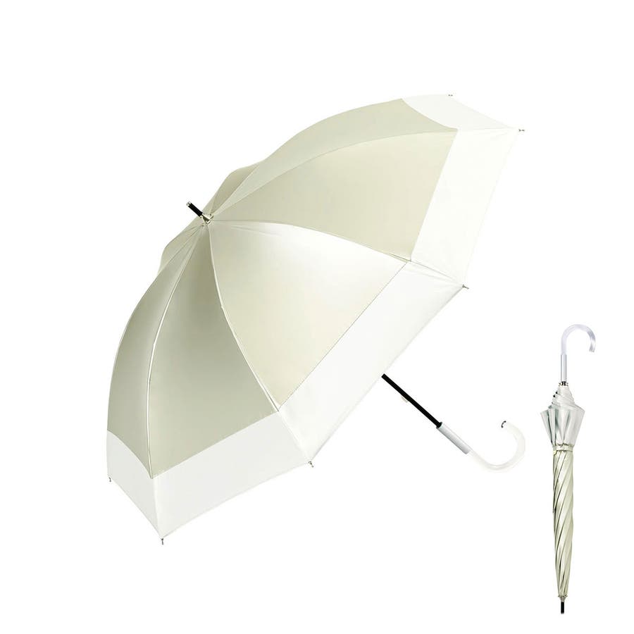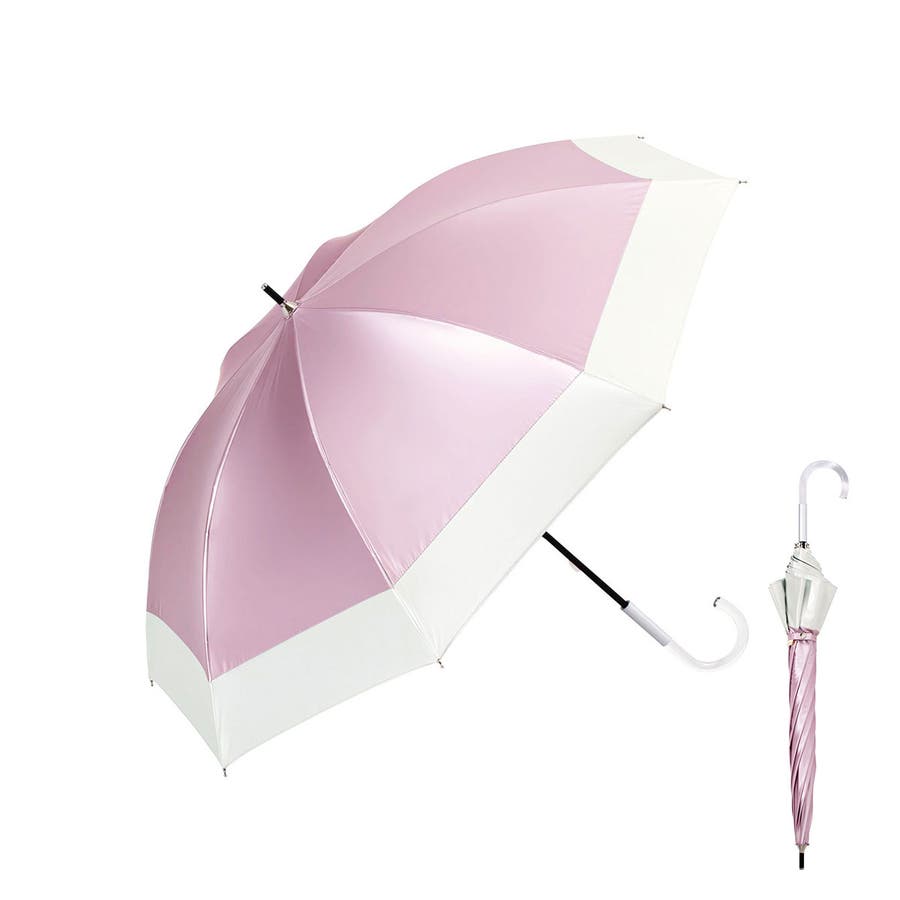 パールのようなきらめきをまとった、光沢感のある『パールブ』シリーズの長傘。生地の表面に顔料を使用した遮光フィルムを使用することにより、美しい光沢とともに99.9%以上の紫外線遮蔽率・遮光率を実現。経年劣化しずらいコーティング構造で長くお使いいただけます。女性らしいデザインと、柔らかな輝きがワンランク上のおしゃれを演出してくれるアイテムです。