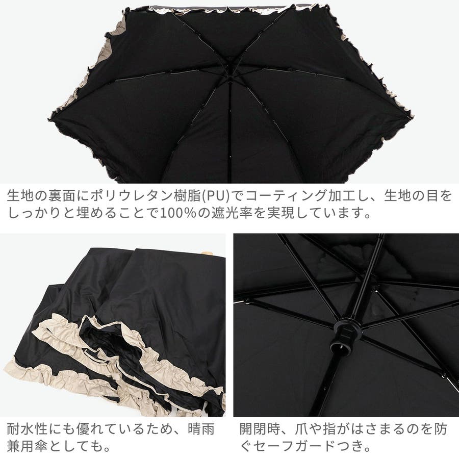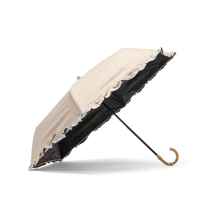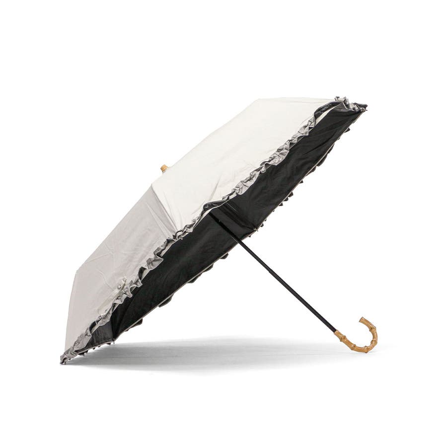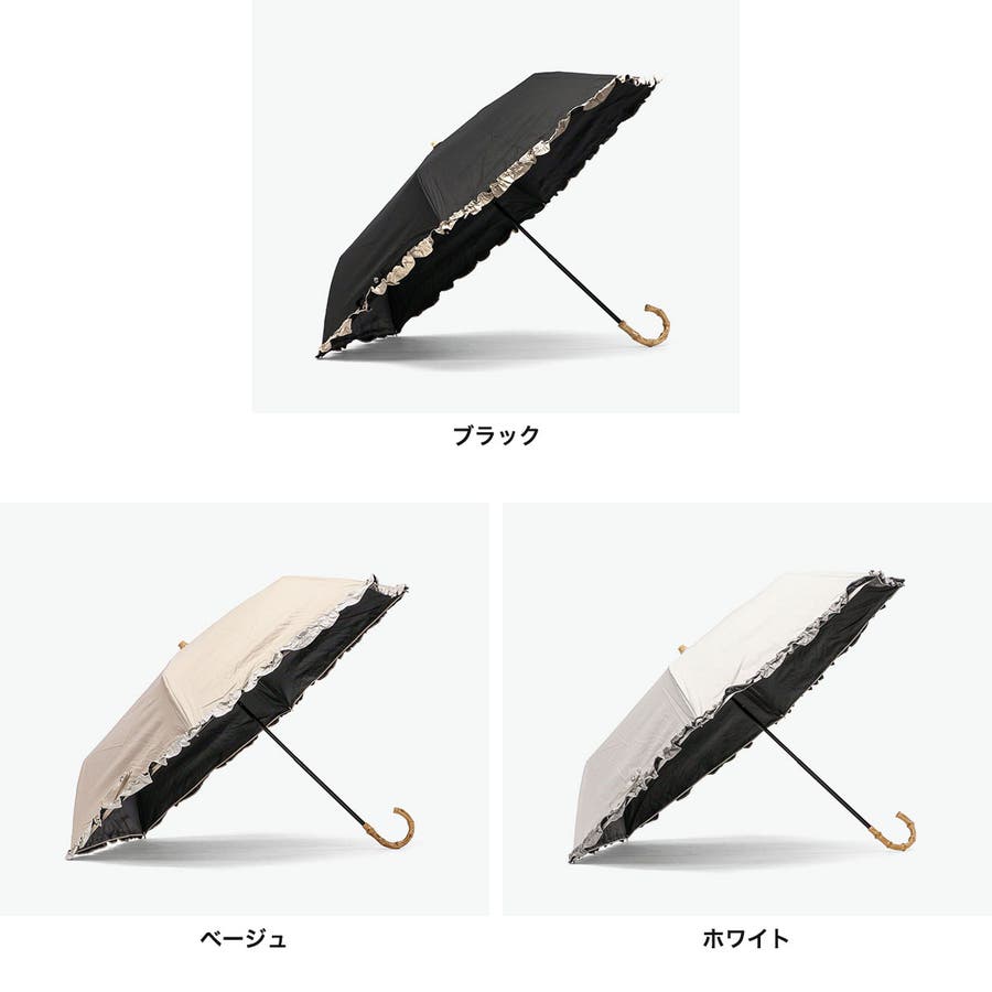 大人可愛いデザインが魅力の晴雨兼用折りたたみ傘。裏面黒コーティングでUVカット率・遮光率100%を実現し、日差しをしっかりブロック。軽量&コンパクト設計で持ち運びも楽々。バンブーハンドルが上品なアクセントに。シンプルな無地にバイカラーフリルをあしらい、フェミニンな印象を演出します。通勤やお出かけにぴったりのアイテムです。