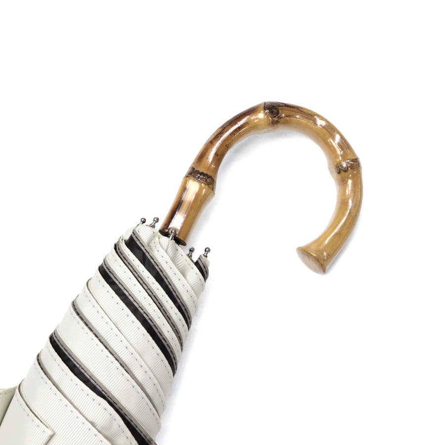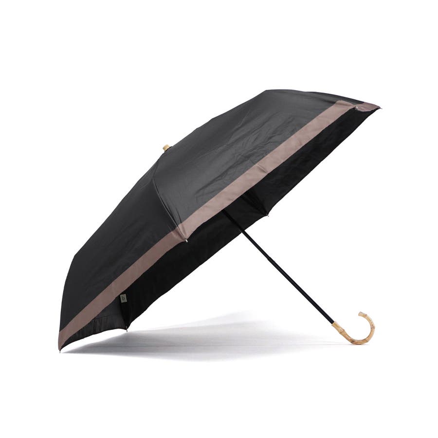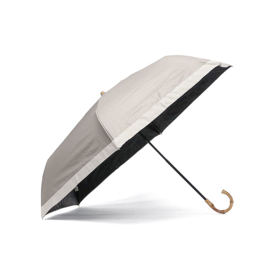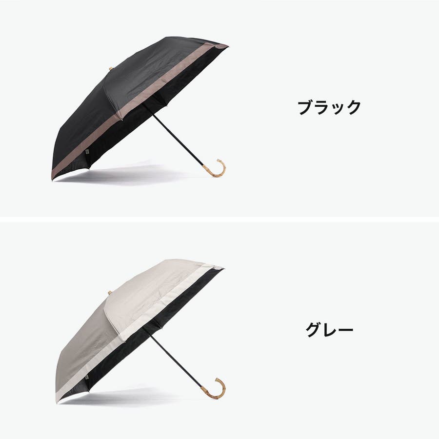 グログランテープと高級感のあるバンブーハンドルが上品さを演出してくれる晴雨兼用の折りたたみ傘です。UVカット率100%の完全遮光生地を使用し、裏面にはPUコーティング加工を施す事で100%の遮光率を実現。デザインと機能性を兼ね備えた1本で、晴れの日も雨の日もエレガントに彩ります。