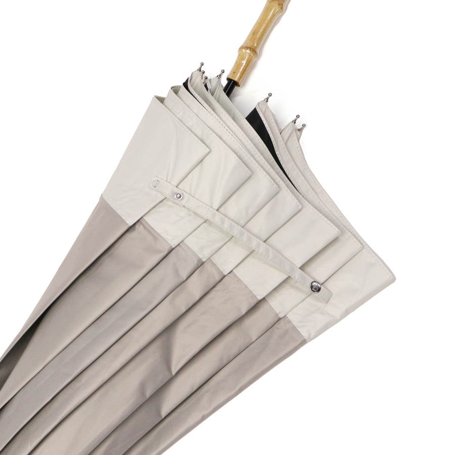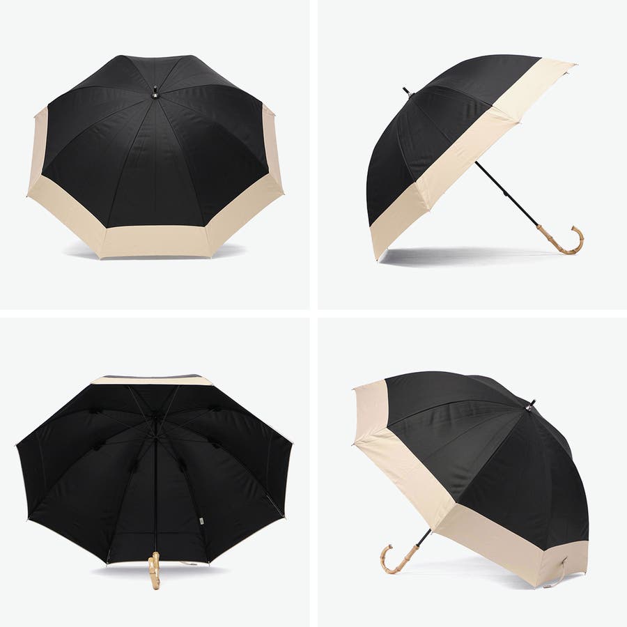 シンプルなバイカラーと高級感のあるバンブーハンドルがポイントの晴雨兼用傘です。UVカット率100%の完全遮光生地を使用し、裏面にはPUコーティング加工を施す事で100%の遮光率を実現。ドーム型の大きめサイズで広範囲をしっかりカバーし、安心してお出かけできます。デザインと機能性を兼ね備えた1本で、晴れの日も雨の日もエレガントに彩ります。