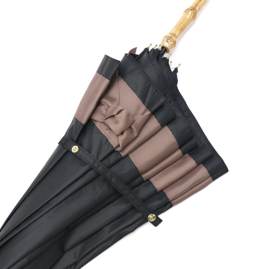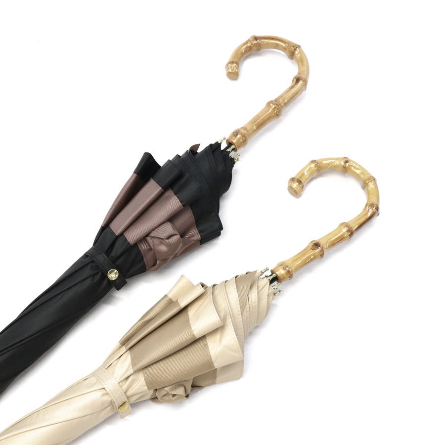 上品で大人っぽいデザインの大きなグログランリボンが魅力の晴雨兼用傘。シックなカラーリングでオンオフ問わず使いやすく、高級感のあるバンブーハンドルが手元を美しく演出してくれます。UVカット率100%の完全遮光生地を使用し、裏面にはPUコーティング加工を施す事で100%の遮光率を実現。デザインと機能性を兼ね備えた1本で、晴れの日も雨の日もエレガントに彩ります。