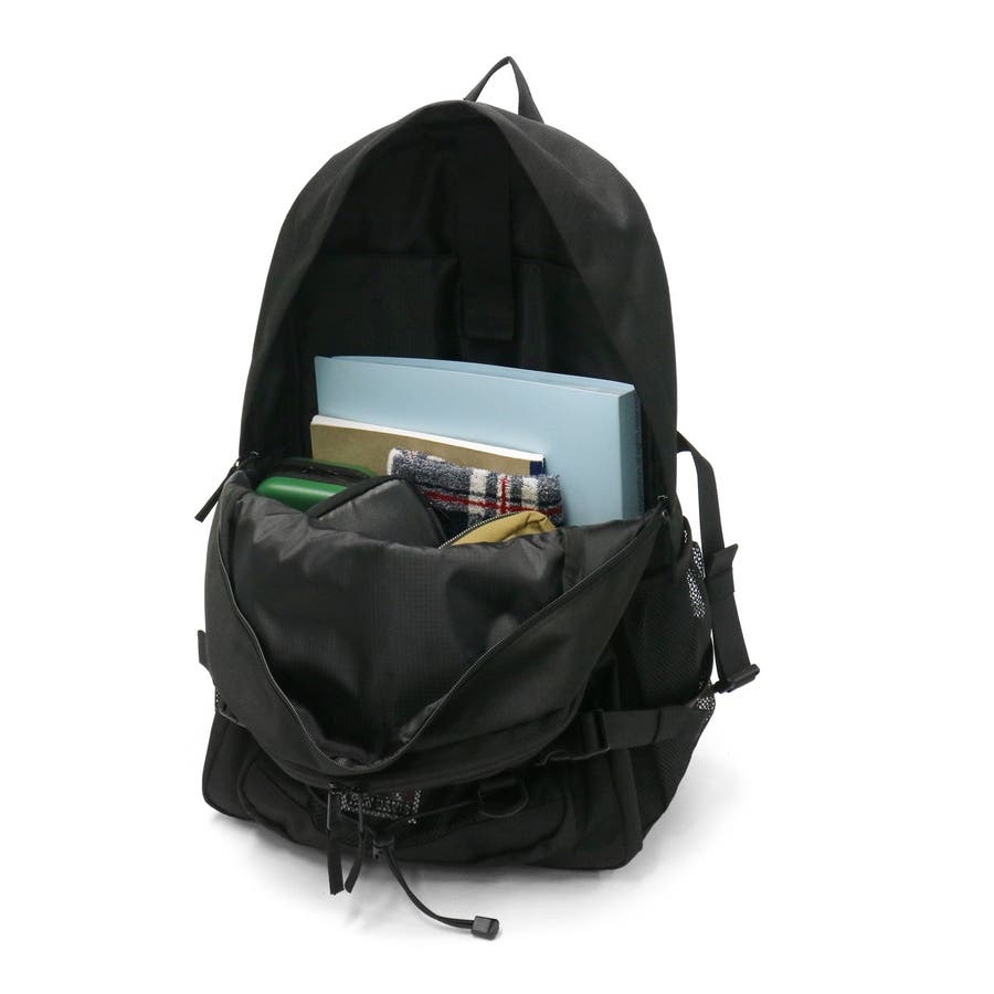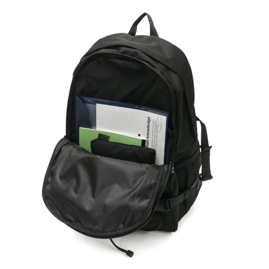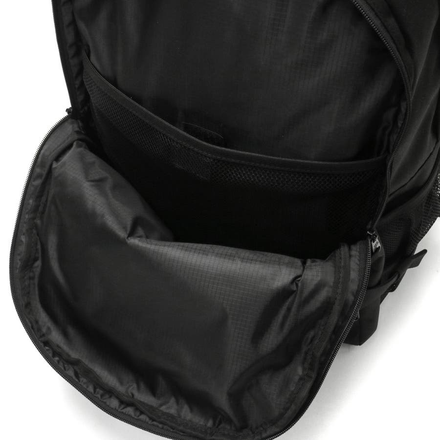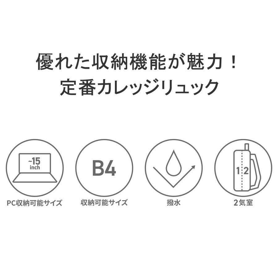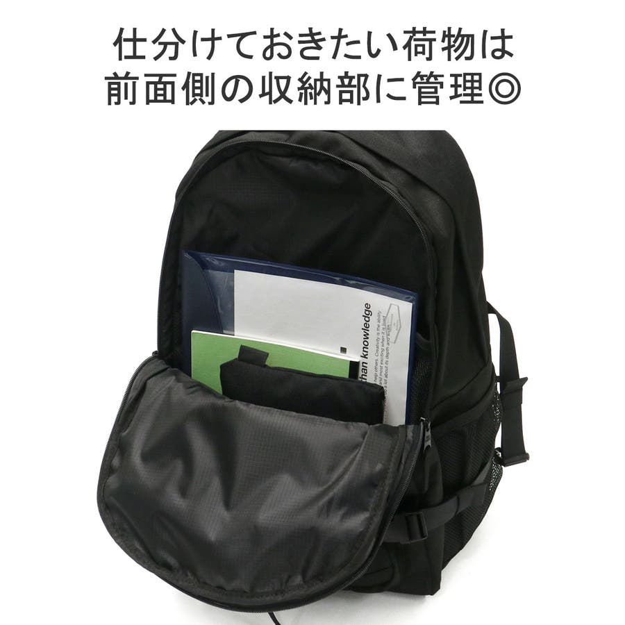 抜群の収納機能が魅力のリュック。容量が31Lと豊富なうえ荷物の整理整頓が行いやすい2層構造になっているので、荷物の多い通学シーンに最適なアイテムです。本体素材には、撥水加工を施しており、雨などのちょっとした水も弾いてくれます。スタイリッシュなロゴ刺繍がアクセントの定番フォルムで、いろんなコーデに合わせやすいのもポイントです。