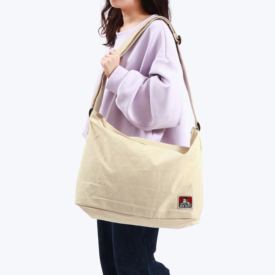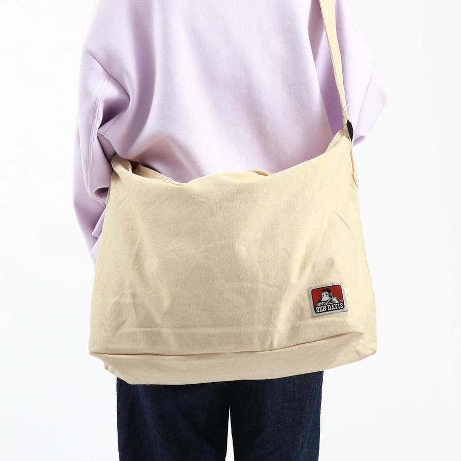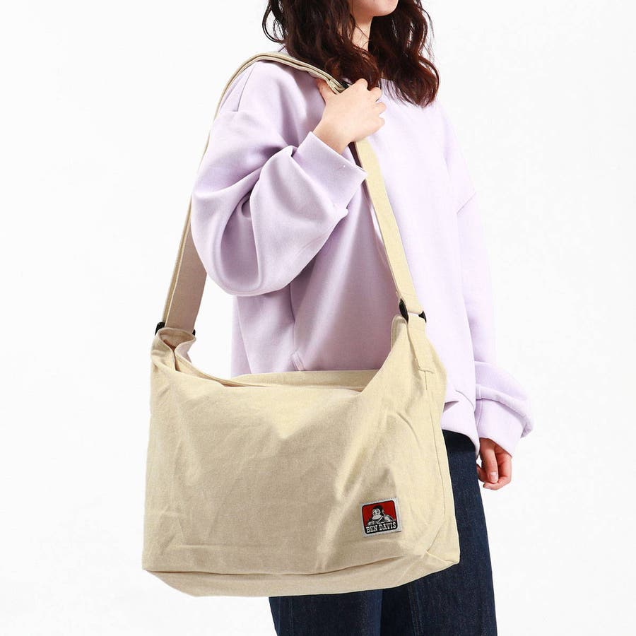 アメリカを代表するワークブランド『BEN DAVIS/ベンデイビス』のトレンド感のある斜め掛けビッグキャンバスショルダーバッグです。A4サイズがゆったり入るサイズ感で、アジャスタがついており、長さ調節が可能。ラフに使えるキャンバス素材で、普段使いから通勤・通学にも最適です。