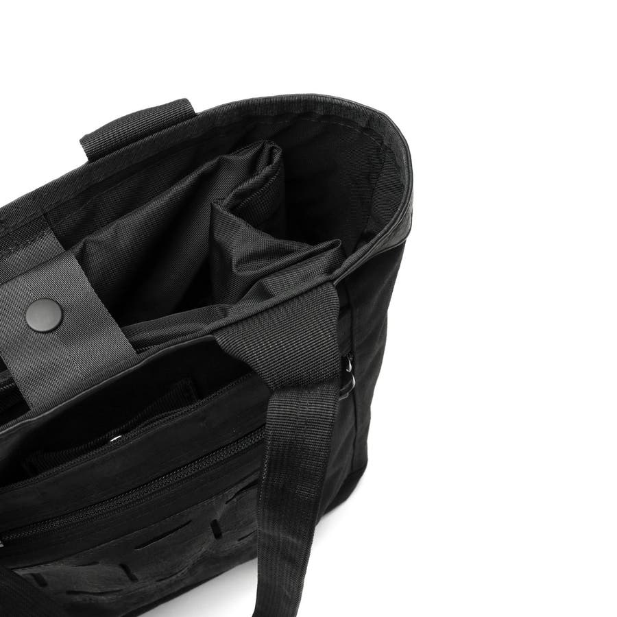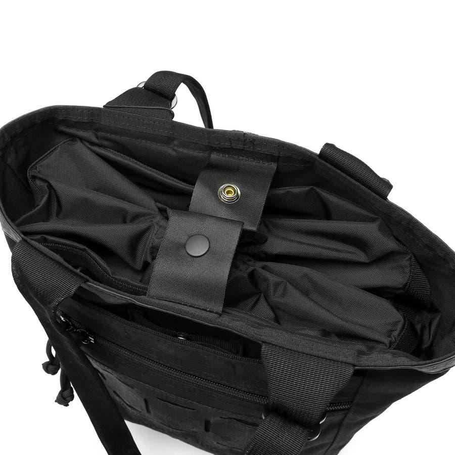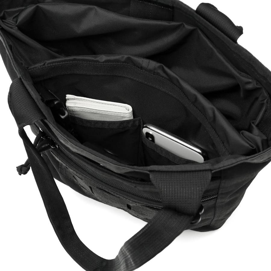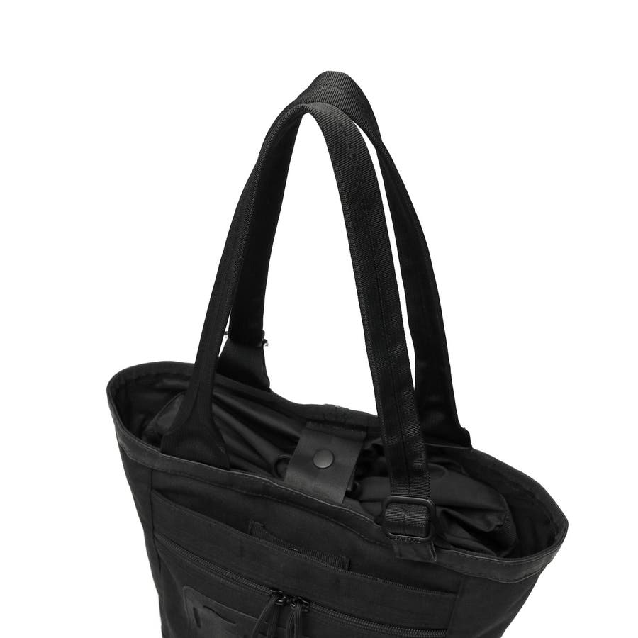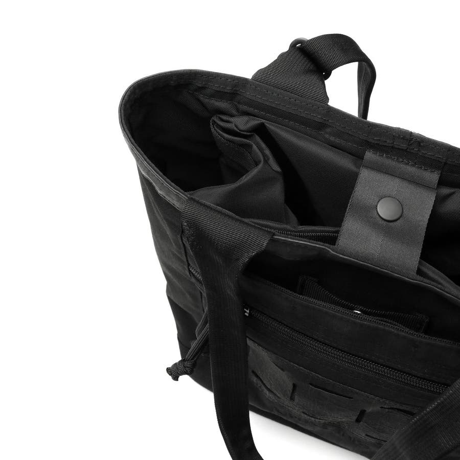 メインファブリックには500デニールの「CORDURA(R)TRUELOCK」ファブリックを使用。軽量性がありながらも、耐摩耗性・引き裂きや引っ張りに対する高い強度と、時間経過での退色がしづらいという特性があり、野外でのタフな使用に最適です。また、繊維が作られる前に色と繊維の原料をブレンドし、水、エネルギー、化学薬品の使用量を減らすことで二酸化炭素排出量を減少させた、地球にやさしい持続可能な方法でファブリックがつくられ、環境にも配慮。アクセントとして各所に配したレザーパッチには、ECCO LEATHER社製のレザーにDYNEEMA(R)(ダイニーマ)を重ねたハイブリットレザーを使用しています。素材の持つ独特の質感も特徴的で、どこか無骨でありながらも都会的でラグジュアリーな印象に仕上がっています。