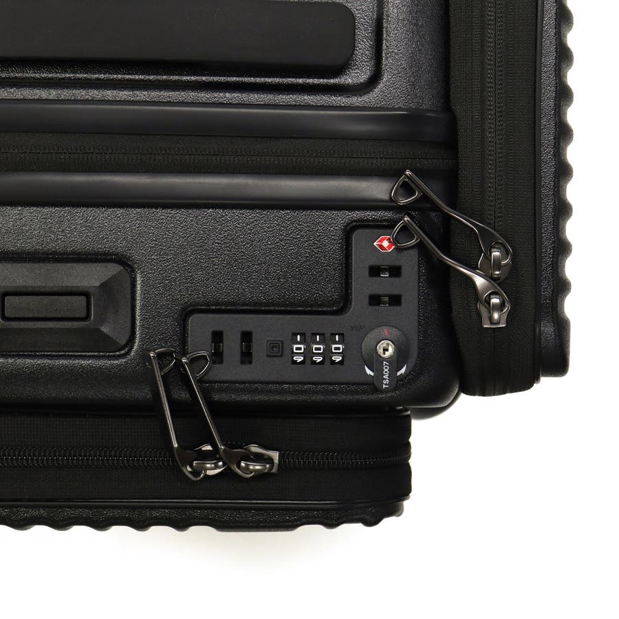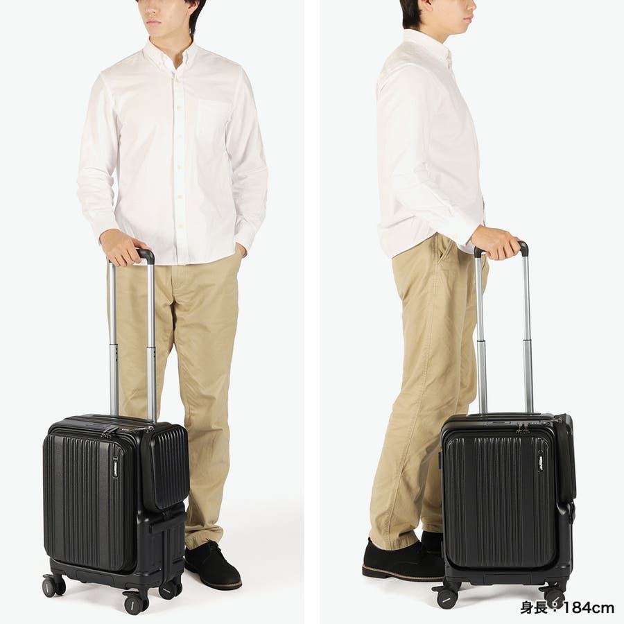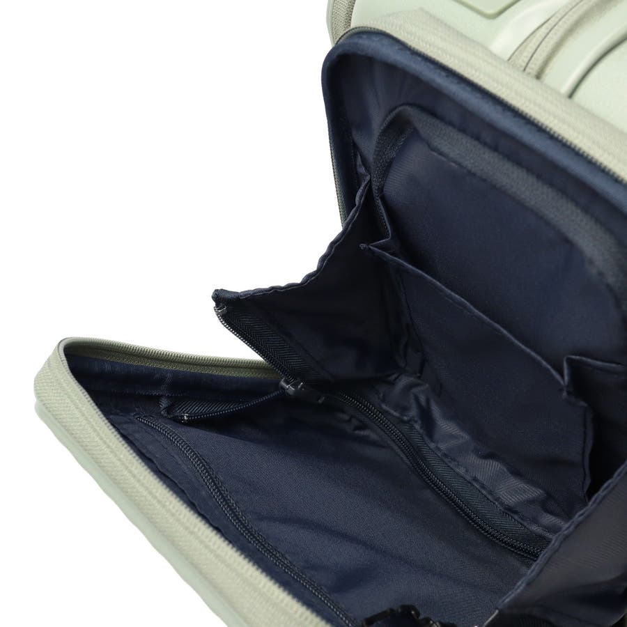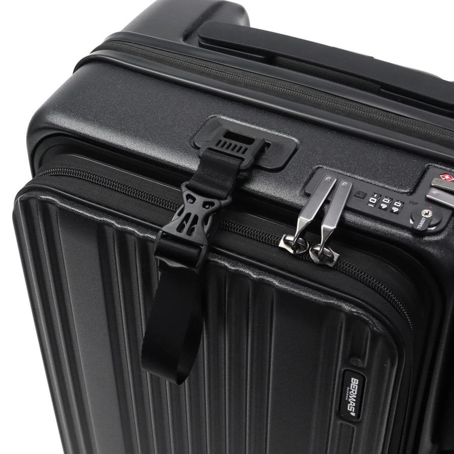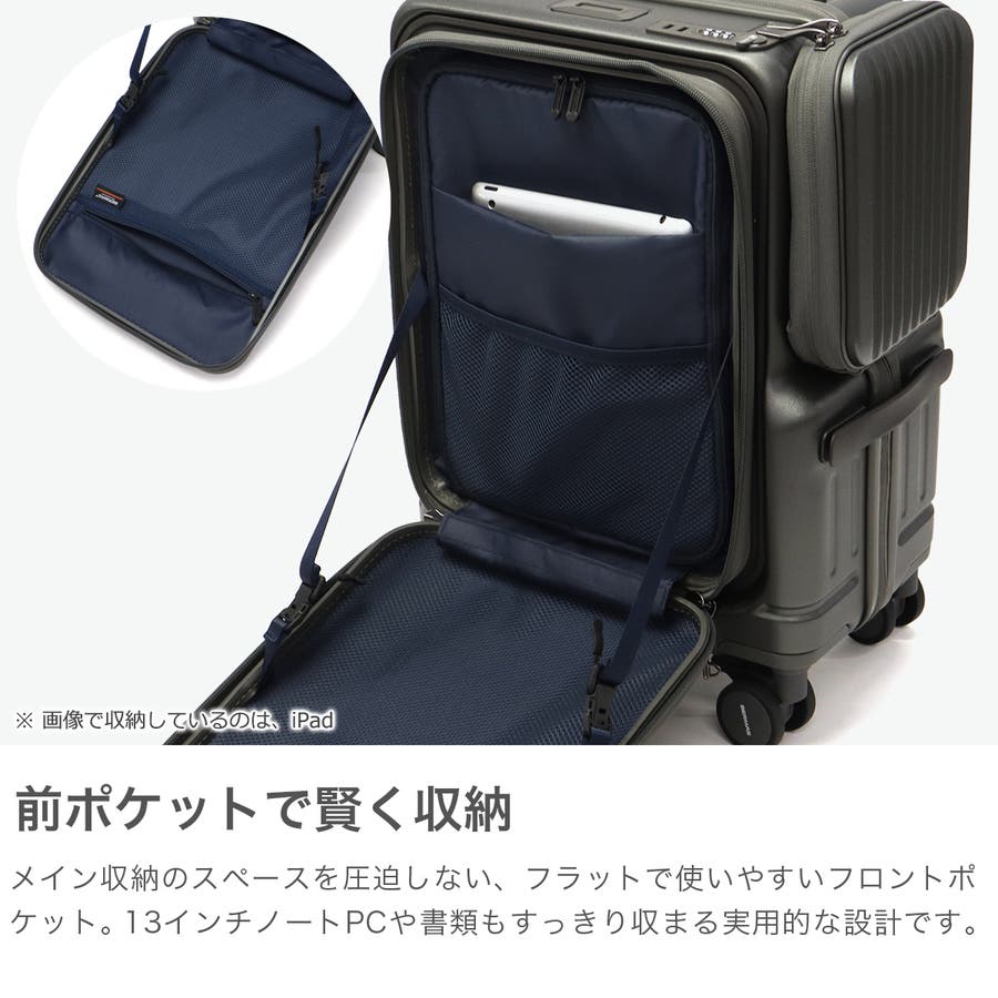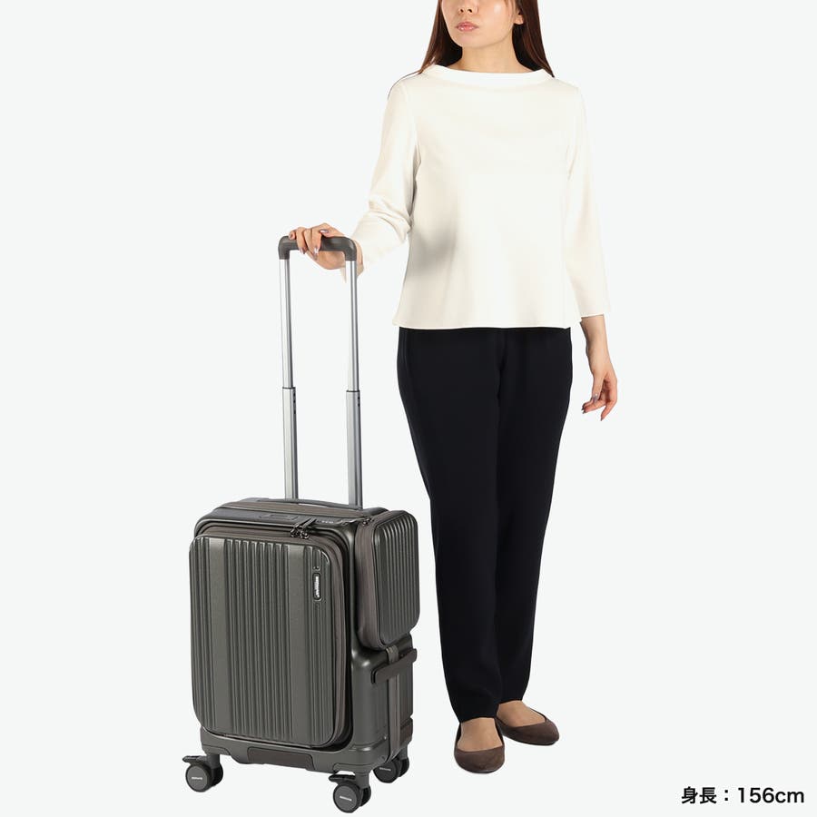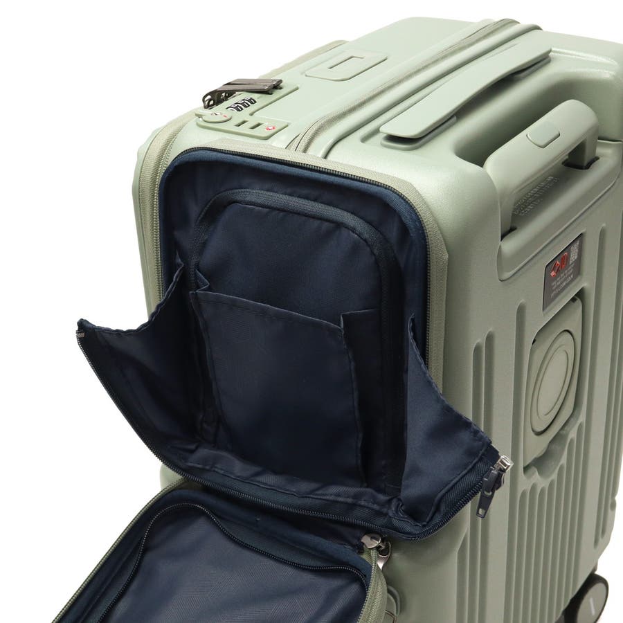収納効率を追求した深型設計のスーツケースです。独立したサイドポケットか上部に配置してあることで、スマートフォンなどの小物類を収納しやすく、しゃがまずに出し入れが可能です。フロントオープン、カップホルダーなど機能性抜群。間仕切りに吊り下げフック付きのインナーボードを付属。 バスルームのフックなどに吊して使えるのでホテルでの利便性も高く、小物など整頓し収納しやすいのでトラベル収納ハンガーとしてもおすすめです。TRAVEL SENTRY ID付きで、万が一の紛失時も安心。