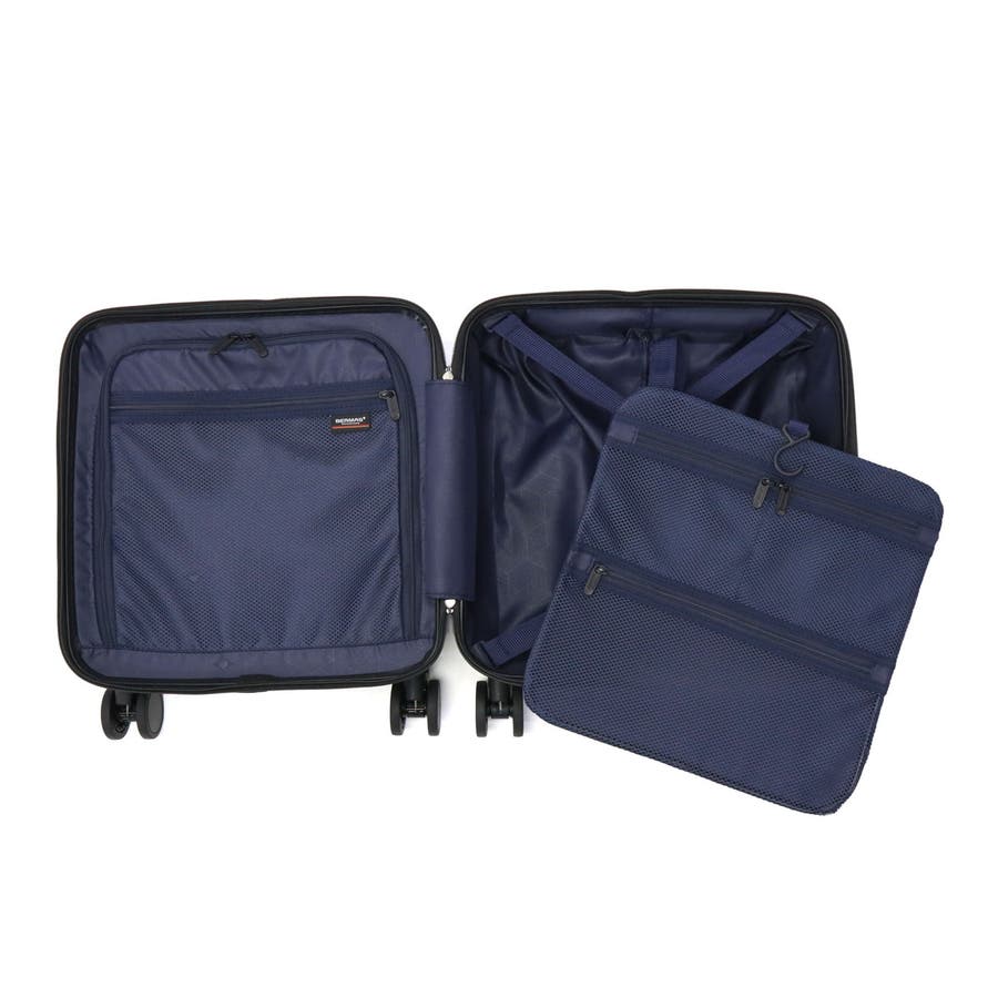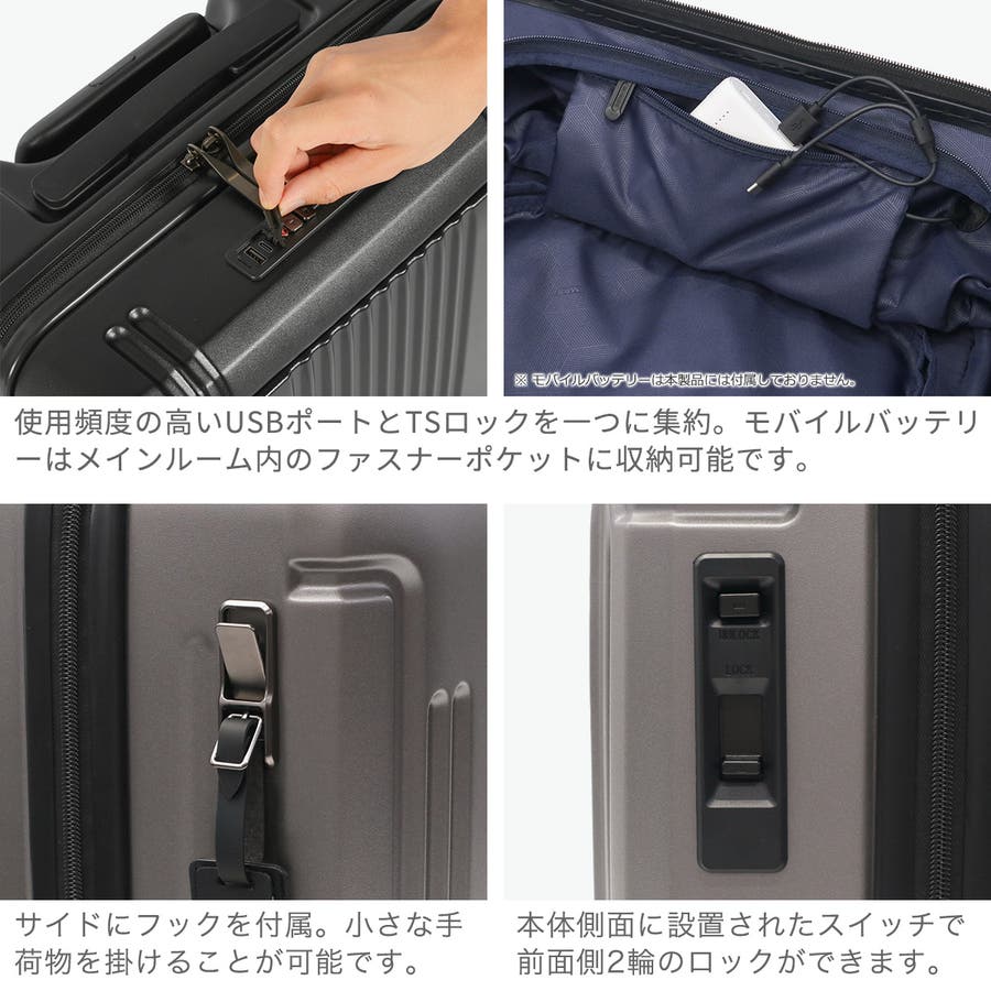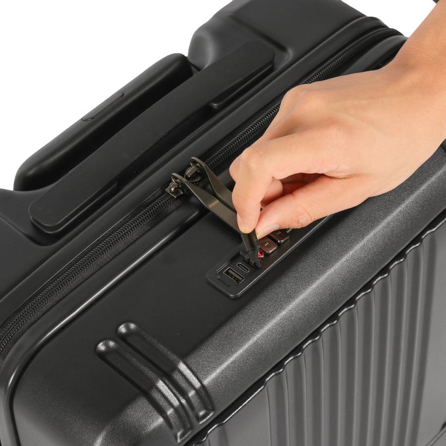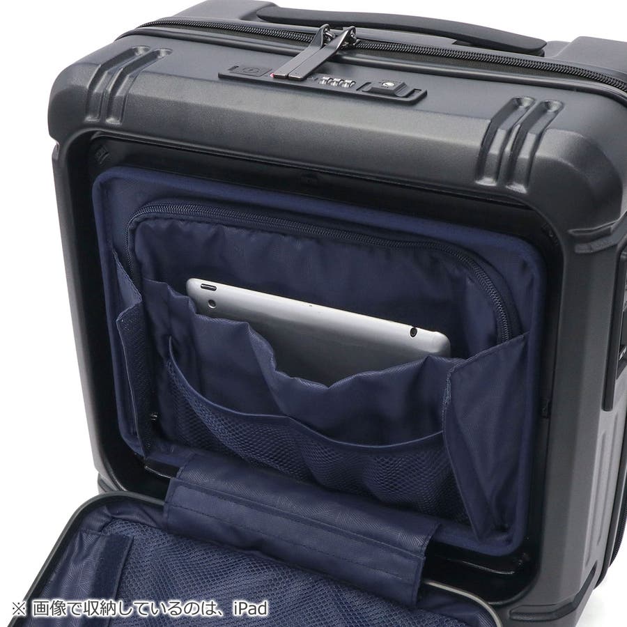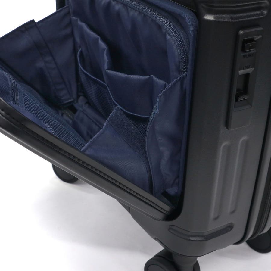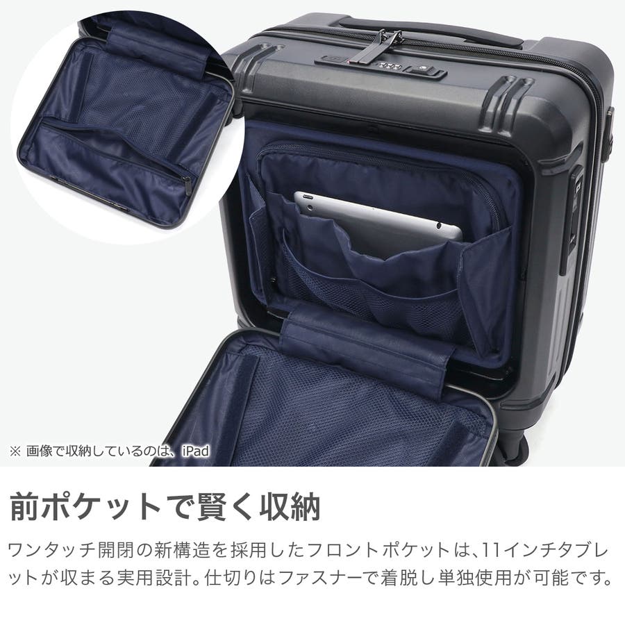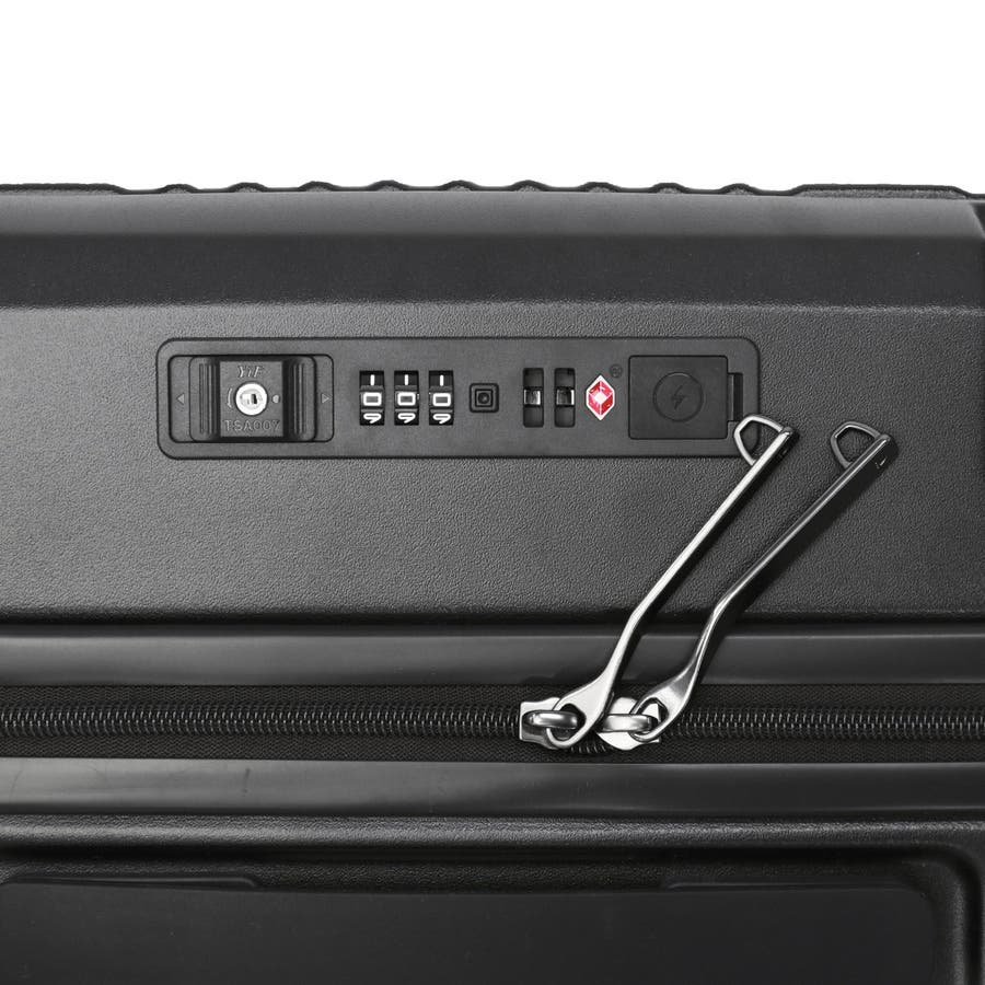 ワンタッチで開くフロントポケットが便利な32L容量のスーツケースです。フロントポケットからメイン収納へのアクセスも可能、タブレット収納やUSBポートなど使いやすさも抜群。軽量かつ静音設計で移動も快適。TSAロック・キャスターストッパー・TRAVEL SENTRY ID付きと、魅力的な機能満載で出張や旅行に最適です。