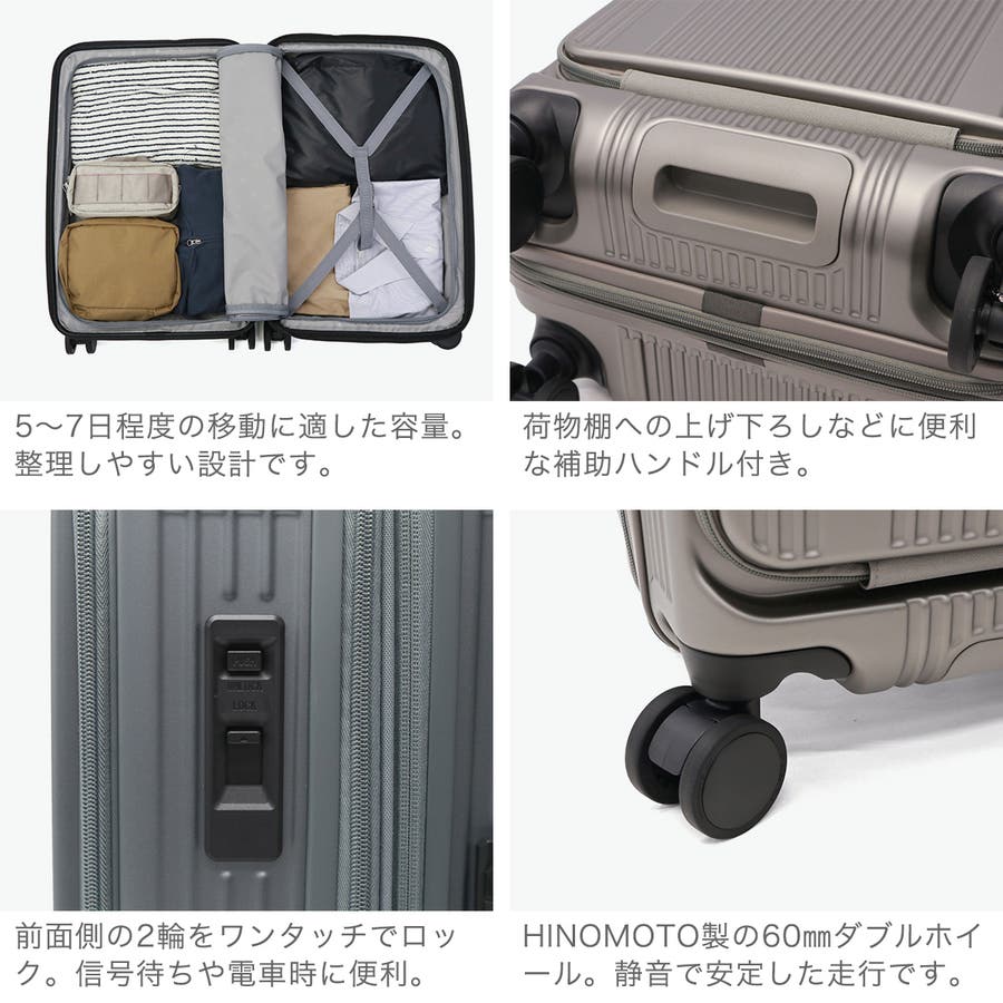 ・エキスパンダブル機能付きの製品は、マチ拡張時の3辺の和が機内持ち込みサイズ、預け入れ無料サイズを超える場合がございます。また、航空会社や飛行機の機種などによって規定が異なりますので、予めご確認の上お求めください。