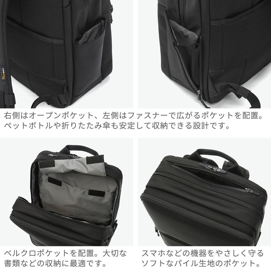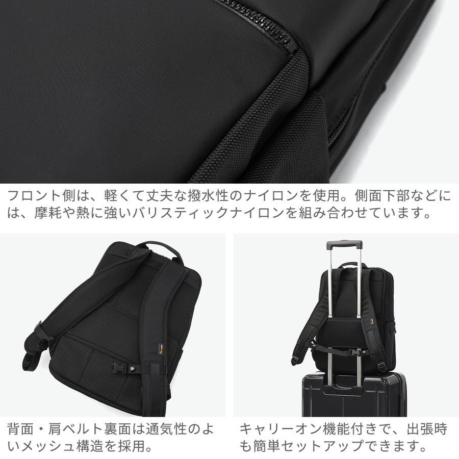 軽さと耐久性を兼ね備えたビジネスカジュアルシリーズ「CITYSCAPE」のB4デイパック。PC収納部やオーガナイザーポケット、ガジェットの持ち運びに便利なモバイルポケットを装備し、高い収納力を実現しています。撥水・防雨・耐摩耗に優れた高密度ナイロン生地で、雨の日でも安心。さらに、キャリーオン機能や通気性の良い背面メッシュなど、ビジネスシーンを快適にする実用的な機能が満載です。