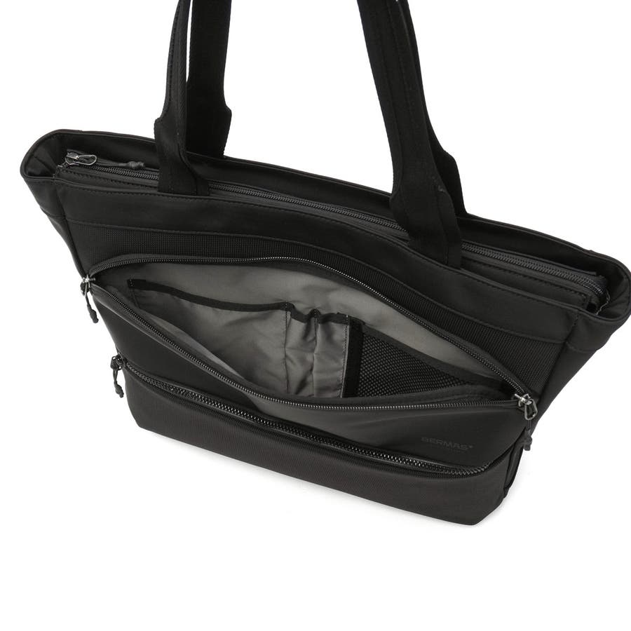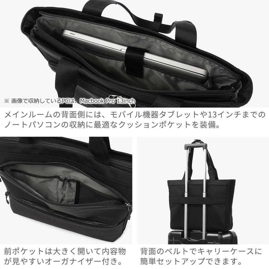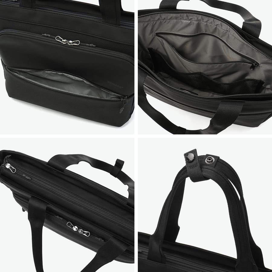 軽さと耐久性を兼ね備えたビジネスカジュアルシリーズ「CITYSCAPE」のビジネストート。PC収納部やオーガナイザーポケット、小物の持ち運びに便利なフロントポケットを装備し、高い収納力を実現しています。撥水・防雨・耐摩耗に優れた高密度ナイロン生地で、雨の日でも安心。さらに、防犯性の高い天ファスナーやキャリーオン機能など、ビジネスシーンを快適にする実用的な機能が満載です。