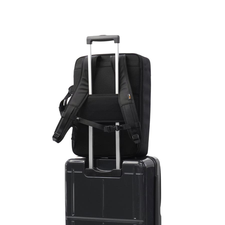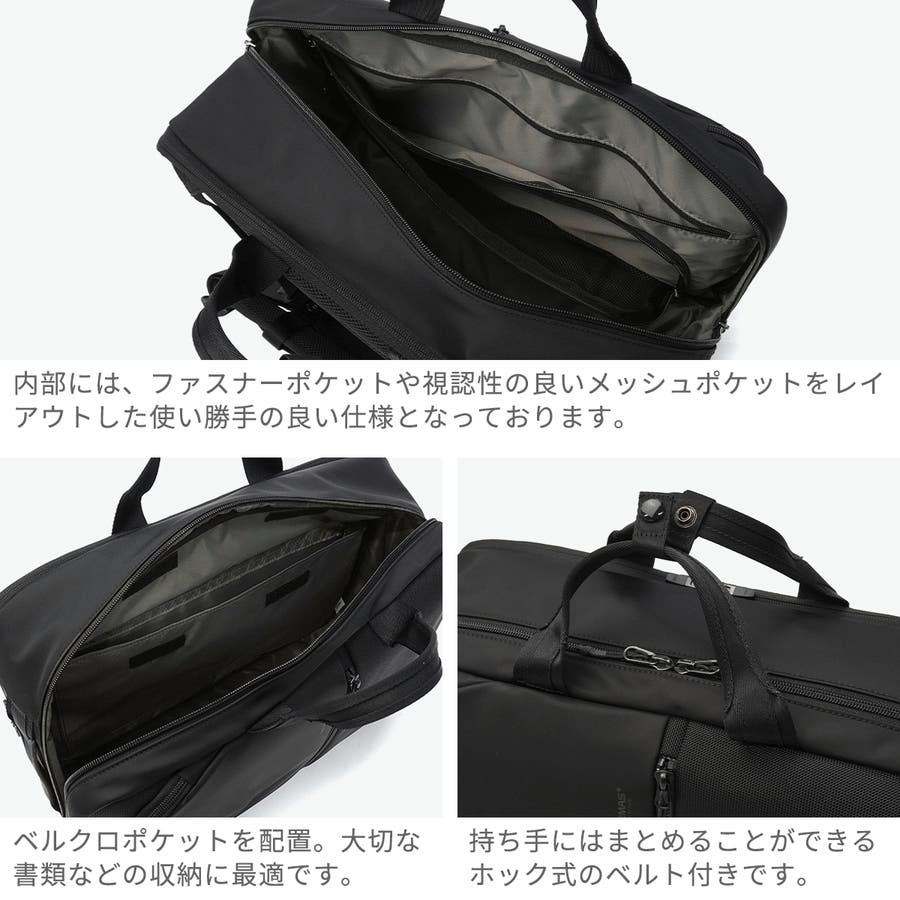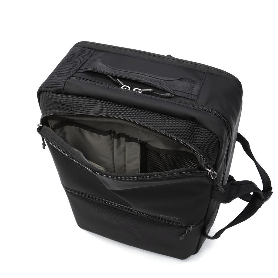 軽さと耐久性を兼ね備えたビジネスカジュアルシリーズ「CITYSCAPE」の2WAYリュック。ブリーフケースとの使い分けが可能です。畳んだ衣類の形崩れを抑えながら出し入れができる収納ポケット付きで、出張にも最適な仕様になっています。撥水・防雨・耐摩耗に優れた高密度ナイロン生地で、雨の日でも安心。PC収納部や細かなポケットも装備し、ビジネスをサポートする実用的な機能が満載です。