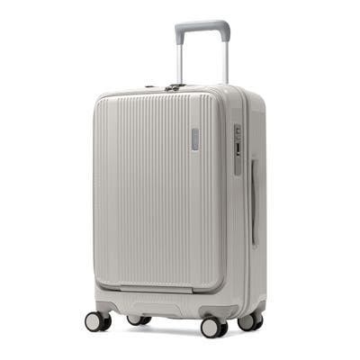 エントリーモデルでありながら、BERMASの基本性能をしっかり備えた『TRAVEL SMART』。こちらは、53Lサイズで、フロントオープン仕様により移動中の荷物の出し入れもスムーズ。メインルームへもスマートにアクセスできます。軽量かつ高強度なポリカーボネート100%ボディに縦リブデザインを施し、耐久性も確保。HINOMOTO製静音ダブルキャスター、TSロック、3段階調節ハンドルを搭載し、やさしいパステルカラーが旅を彩ります。