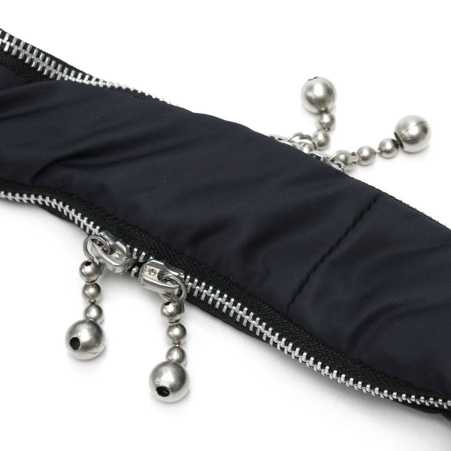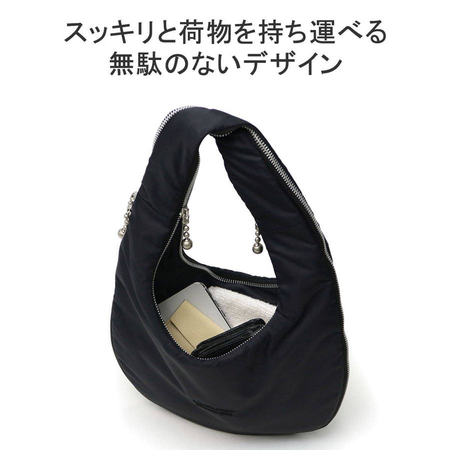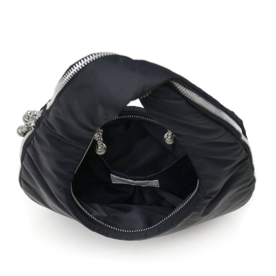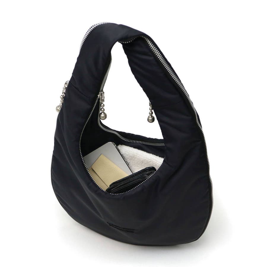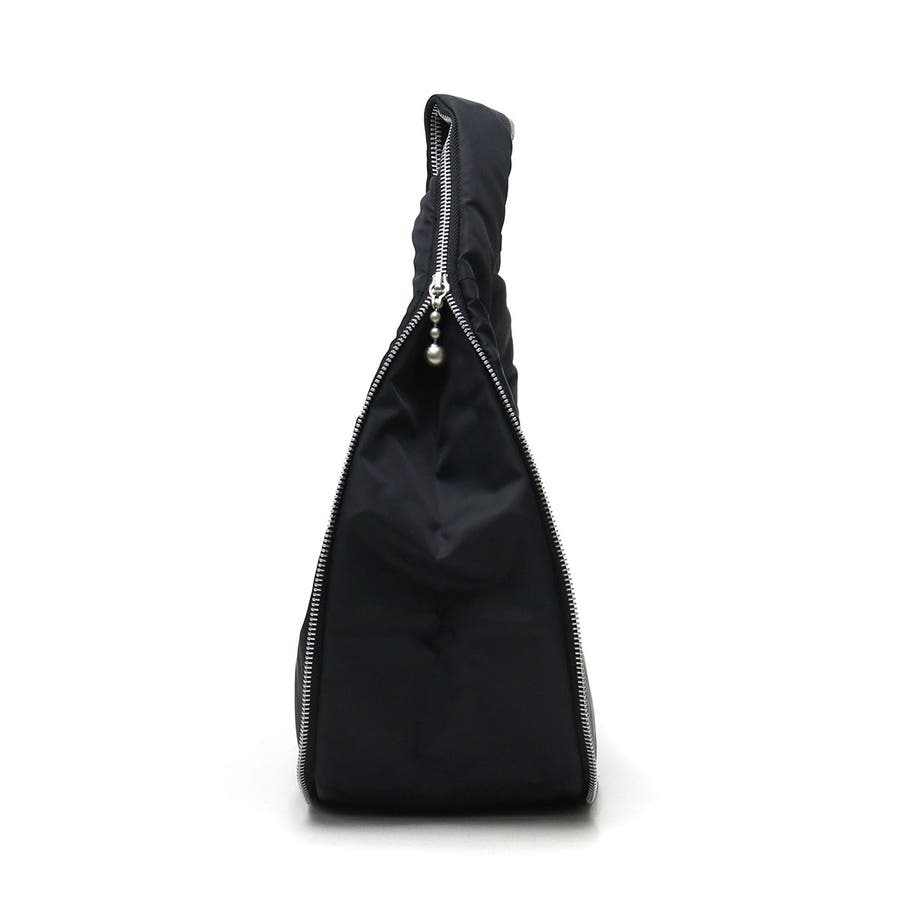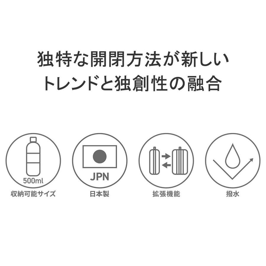無限など比喩として捉えられる『メビウスの輪』からインスピレーションを得た、Sサイズのハンドバッグ。4つのスライダーがある特殊仕様で、口元とマチを別々に開閉ができます。口元開閉用のファスナーが、本体外側まで1本でつながっており、ファスナーの開閉でマチの拡大が可能に。素材に弱撥水加工が施され、小雨程度であれば防ぐことができます。トレンド感溢れるデザインと独創性が融合したほかにはない逸品です。