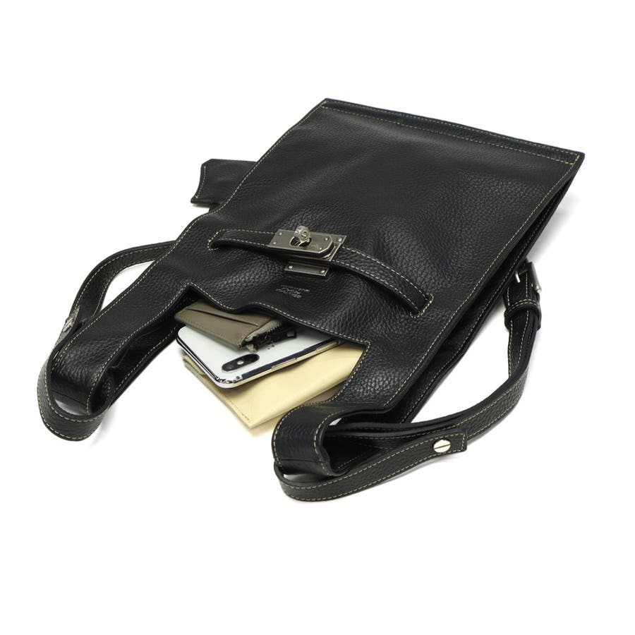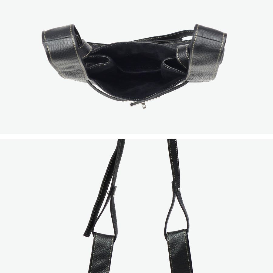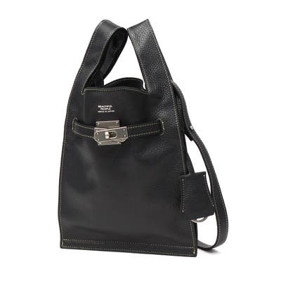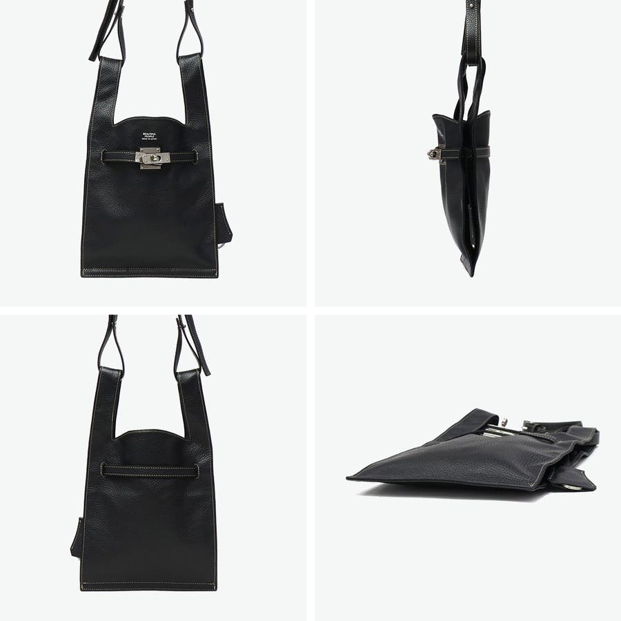 イタリア製シュリンクレザーを使用した2WAYショルダーバッグ。マーケットバッグと金具の組み合わせが特徴で、「高価」と「安価」、「理想」と「現実」など相反する要素を融合したデザインに仕上がっています。付属のチャームはキーリングとしても使用可能。裏地には手触りの良い起毛ポリエステルを採用し、使い心地も快適です。