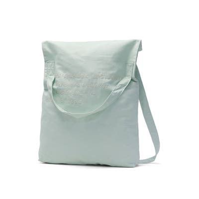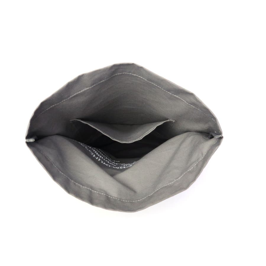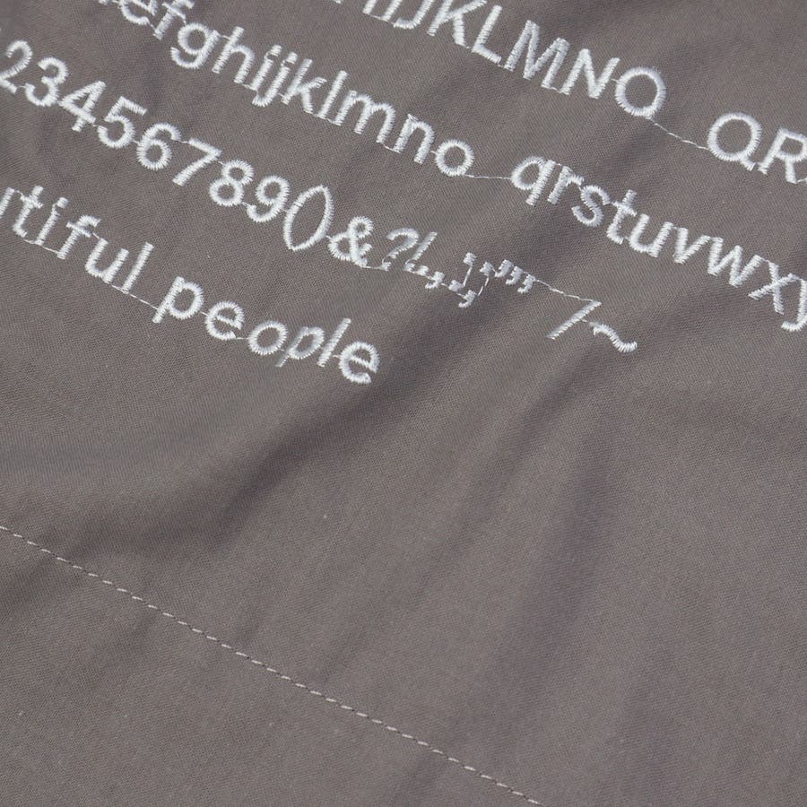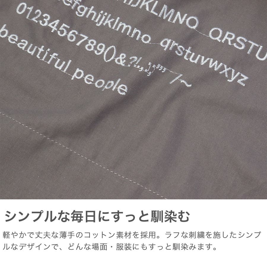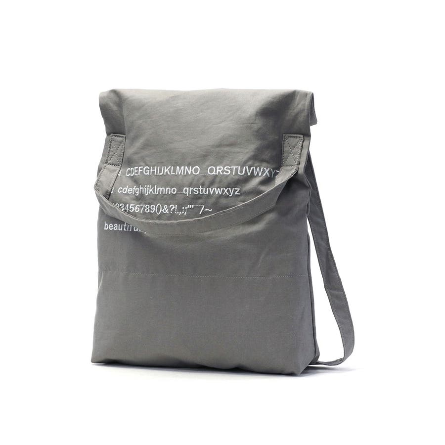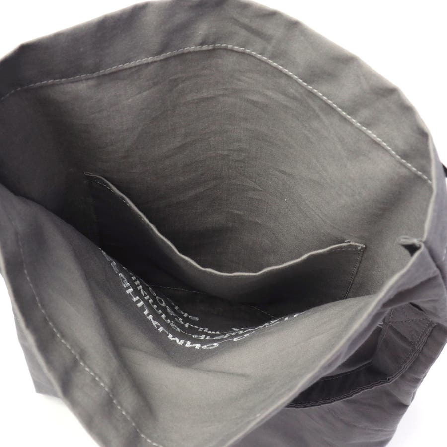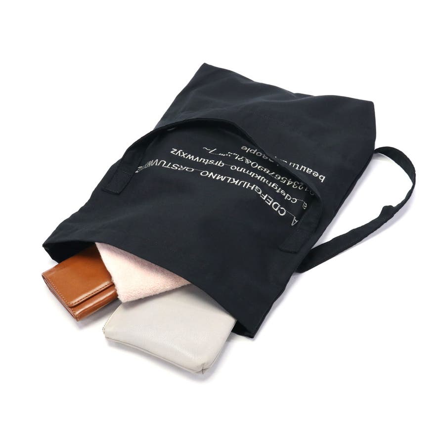 服作りのシルエット確認に使用される、軽い薄手のコットン素材のフラップ付きトートバッグ。前後で長さの違うテープが付いており、短い方は手持ち・長い方は斜めがけができる2WAY仕様となっています。アルファベット刺繍は加工後の糸処理をしておらず、滅多に見れないラフな仕上がりに。さらに、ブランド名に関連した一部の文字を意図的に省いた刺繍が施されており、細部にまでこだわりの詰まったアイテムです。