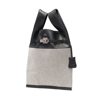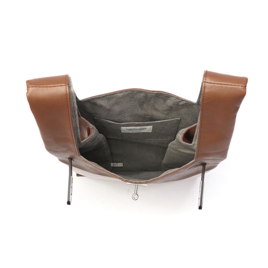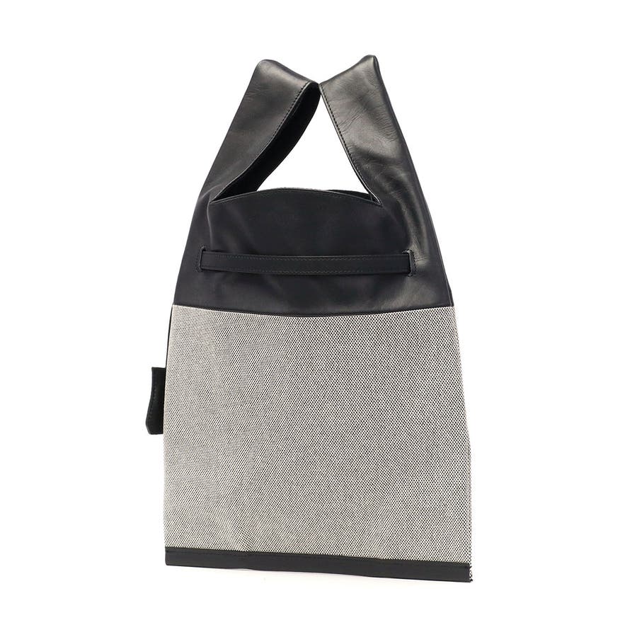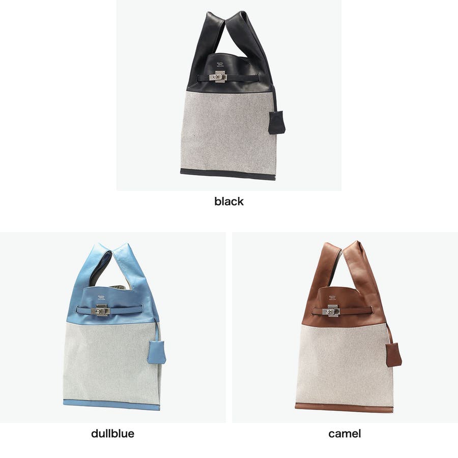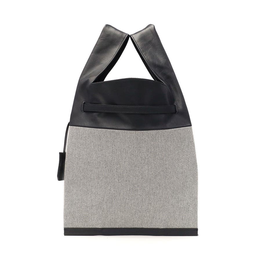 上質な牛革とカジュアルなコットンを組み合わせたトートバッグ。マーケットバッグと金具の組み合わせが特徴で、「高価」と「安価」、「理想」と「現実」など相反する要素を融合したデザインに仕上がっています。付属のチャームはキーリングとしても使用可能。裏地には手触りの良い起毛ポリエステルを採用し、使い心地も快適です。