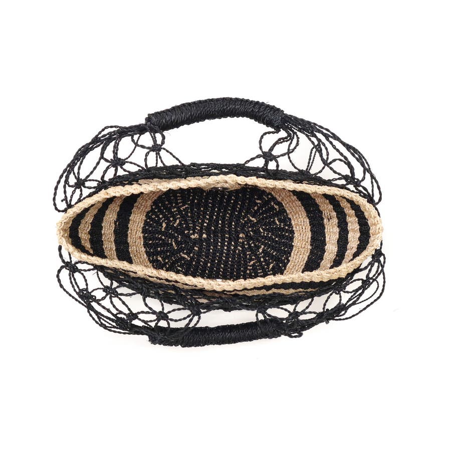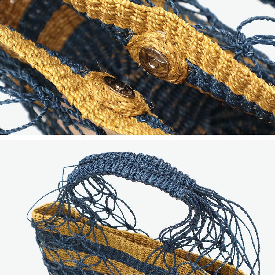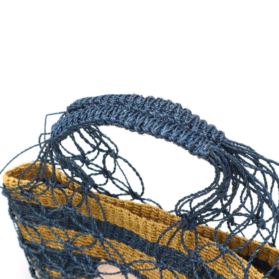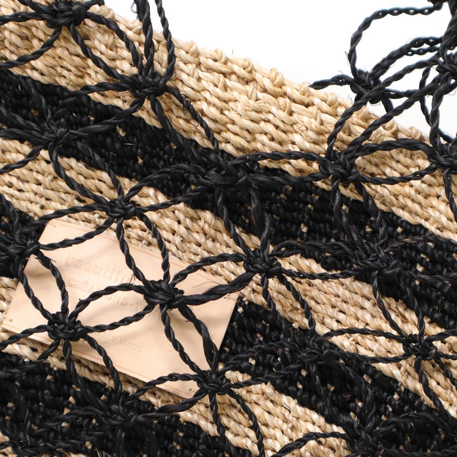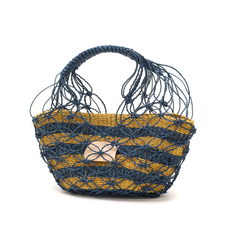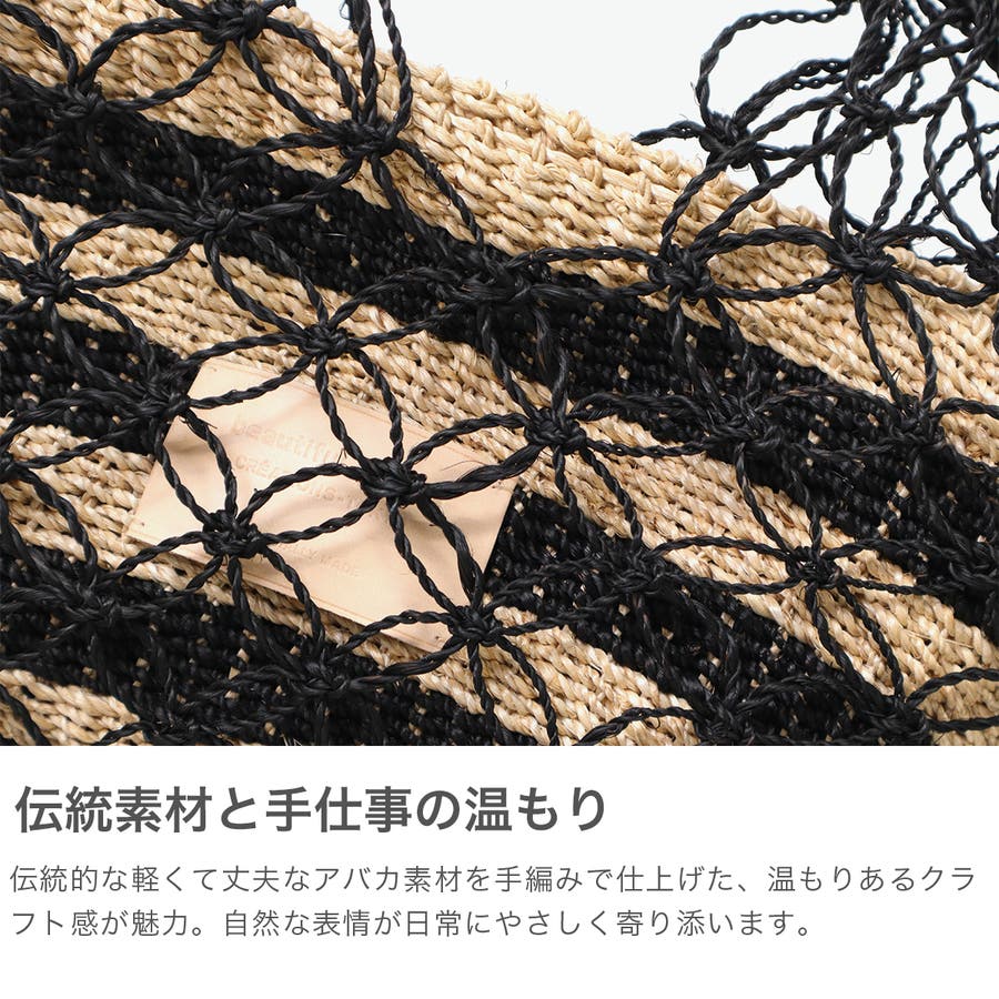 いつものスタイルにさりげないアクセントを添える、大人可愛いかごバッグ。ボーダー柄に編まれた横長のバスケットを、メッシュ状に編んだトートバッグで包み込んだような二重構造がポイントです。オリジナルで染めたアバカを使用し、温もりを感じさせながらも、涼しげで軽やかな印象に仕上げました。