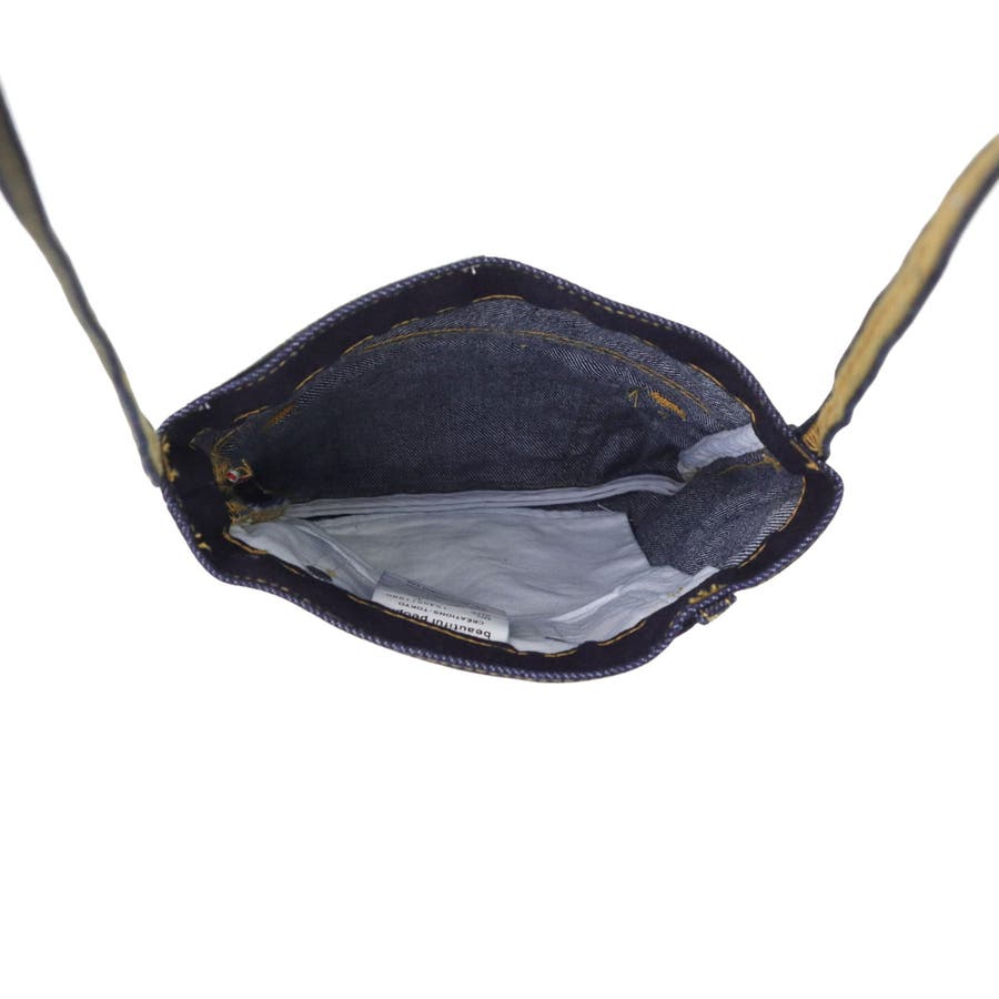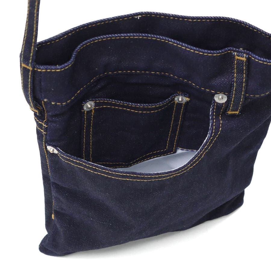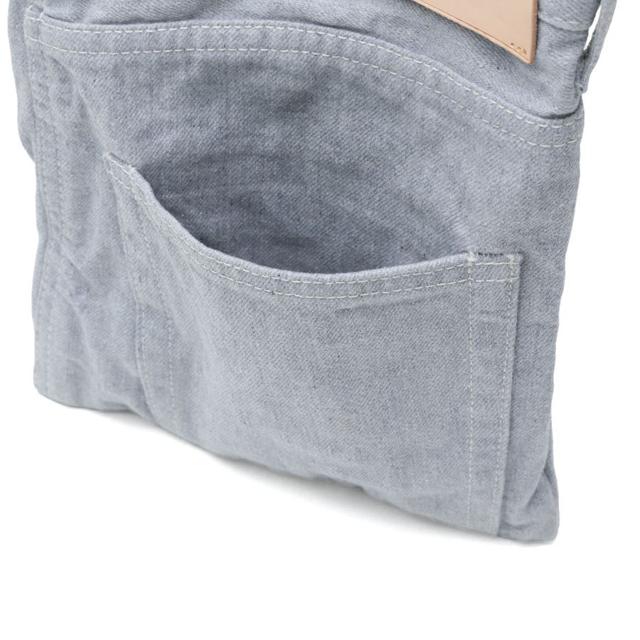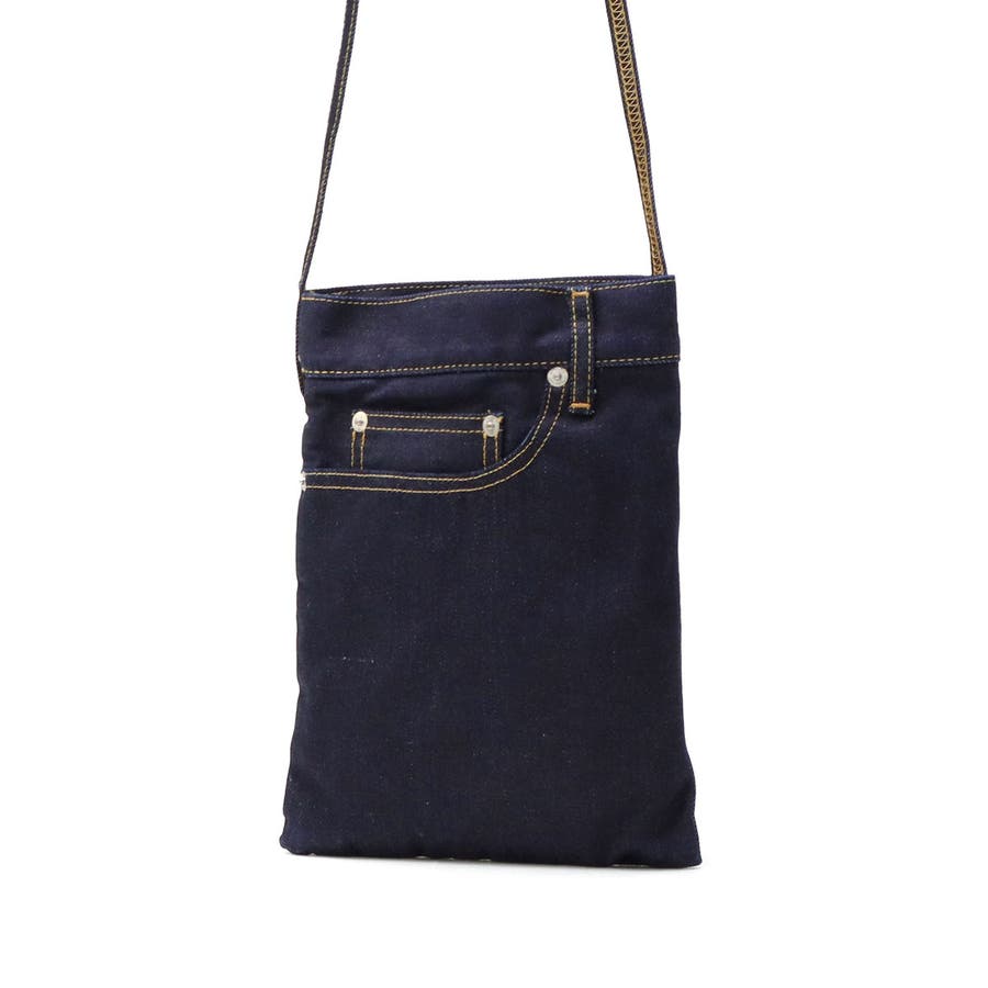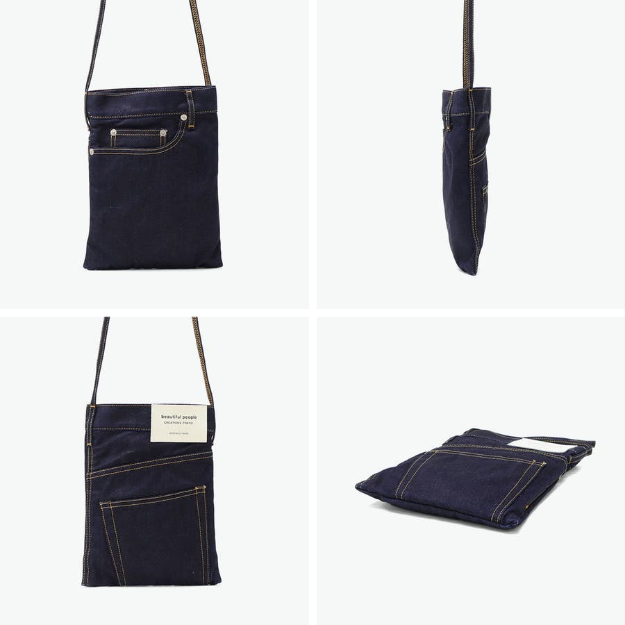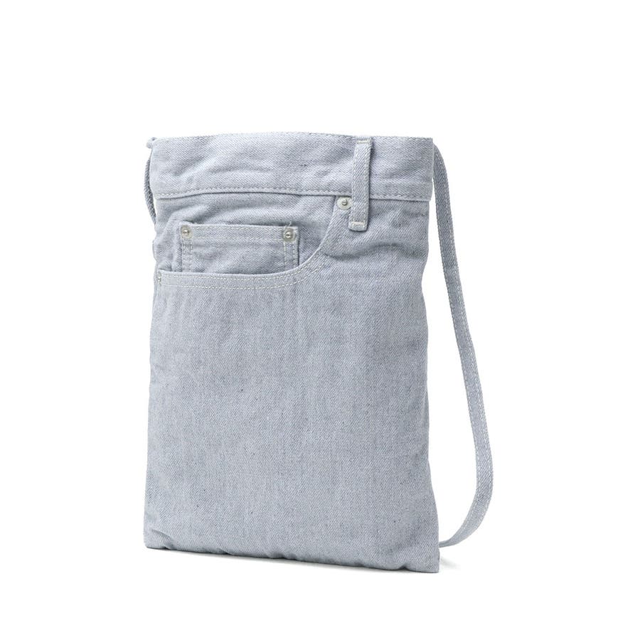 巻き縫いやループ、ポケットディテール、ベルト…と、デニムの5ポケットパンツからデザインを抜粋した、遊び心満載のショルダーバッグ。ループ使いのショルダーストラップは、結んで調整が可能。さらにウェアに合わせた製品ワンウォッシュ加工を施し、自然な風合いと統一感のあるルックスに仕上げています。