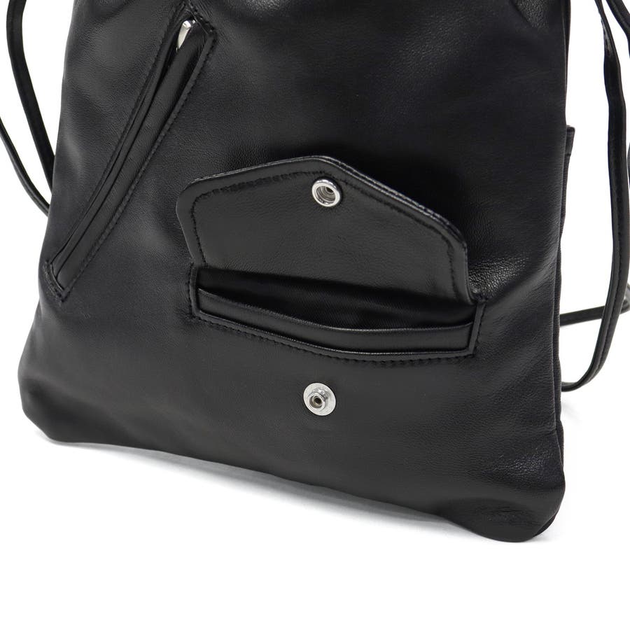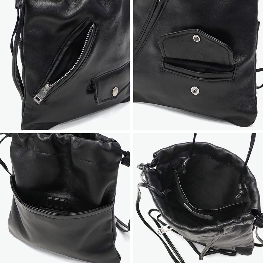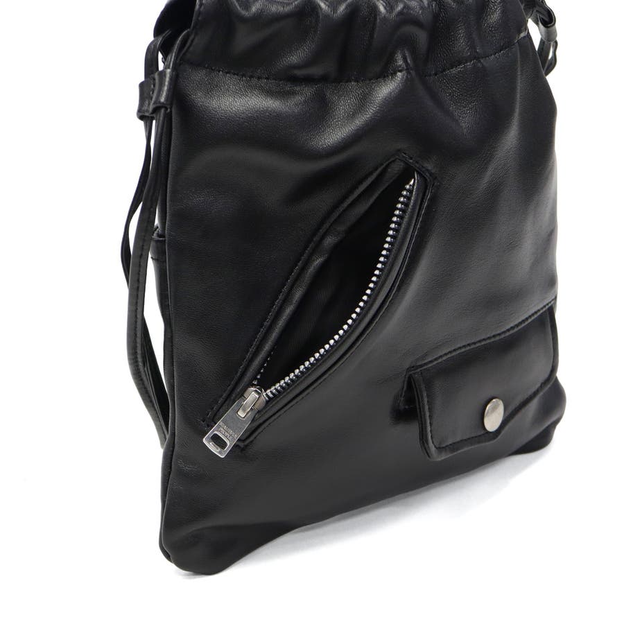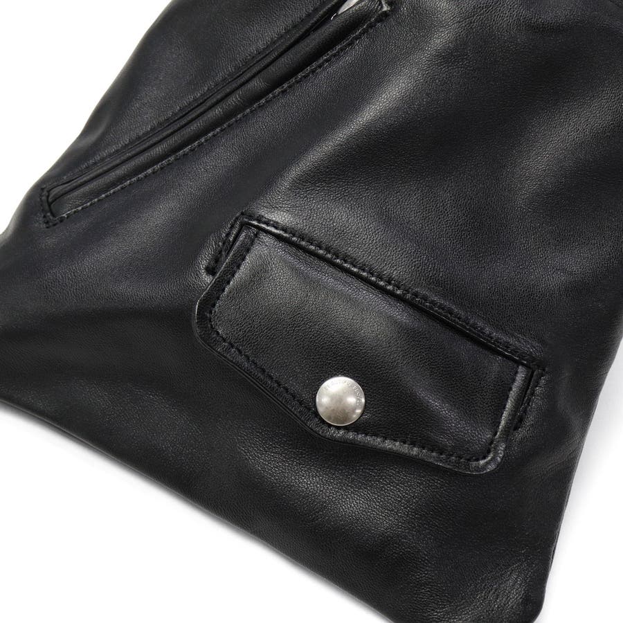 ライダースジャケットのディテールを抜粋した巾着型のショルダーバッグ。素材にはヴィンテージライダースと同様の高品質な羊革を使用し、ハリと艶を兼ね備えた上品な仕上がりになっています。オリジナルのファスナー引手を使用するなど、細部にまでこだわったデザインが魅力です。