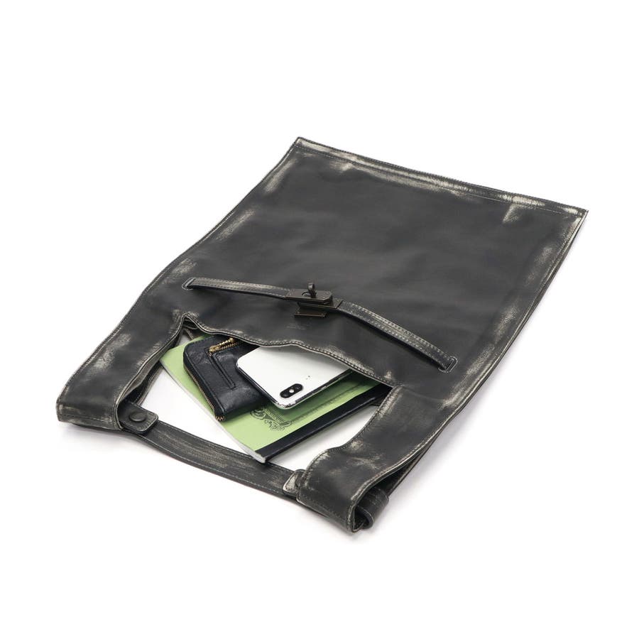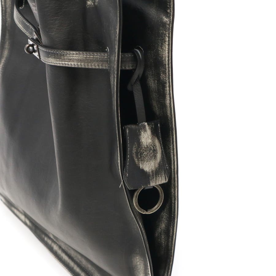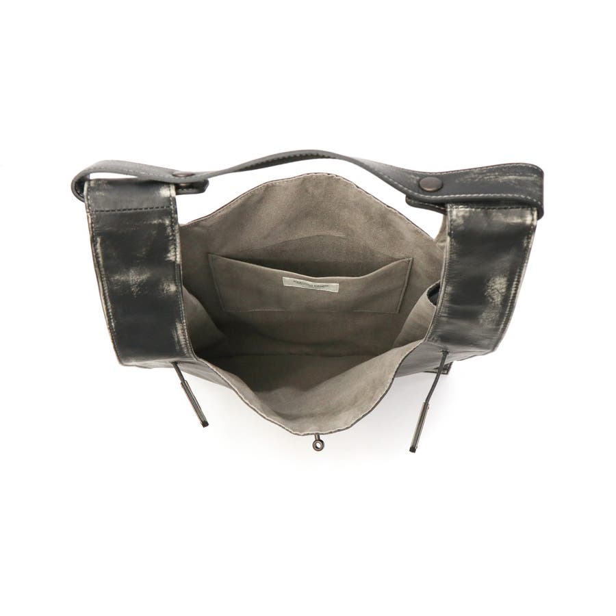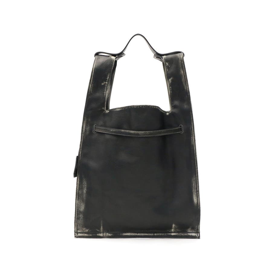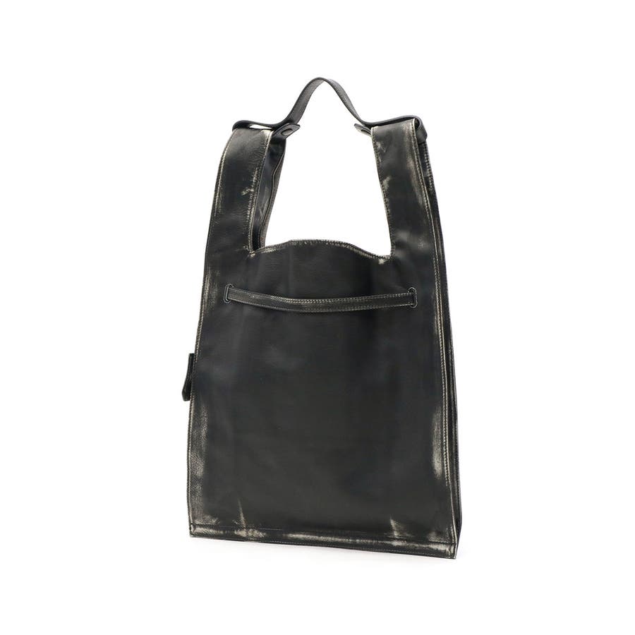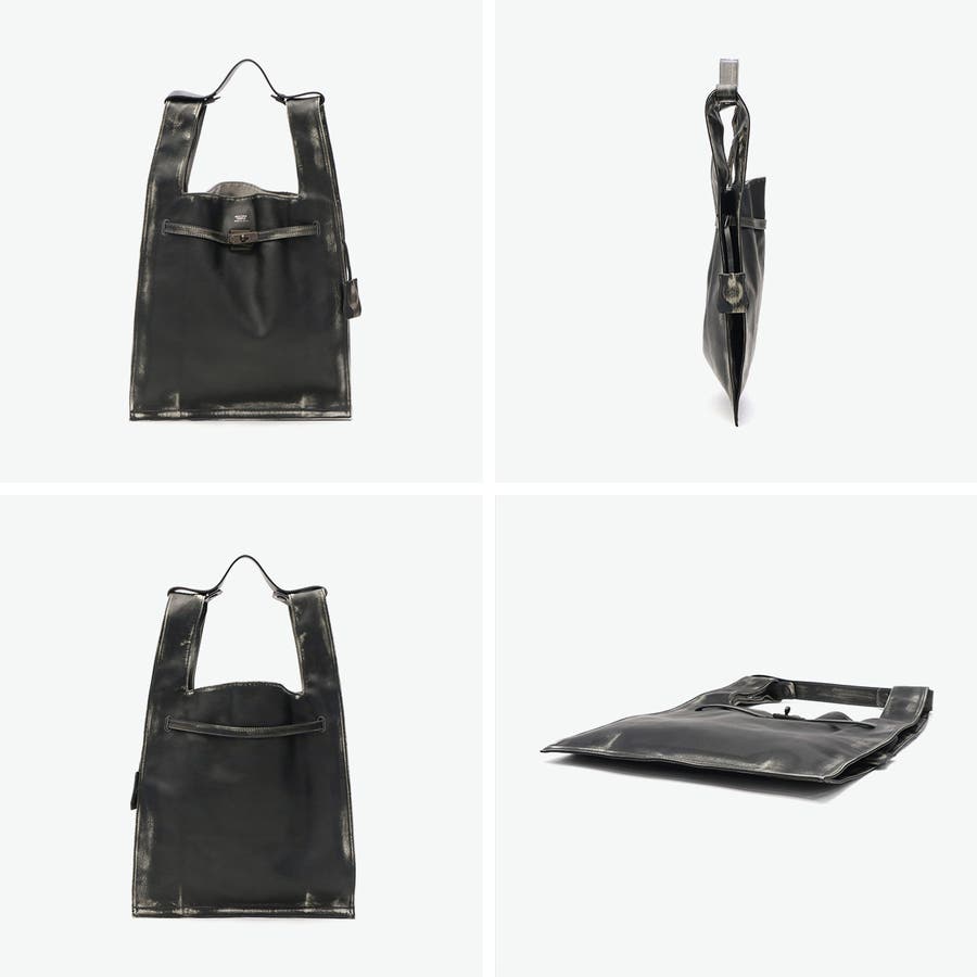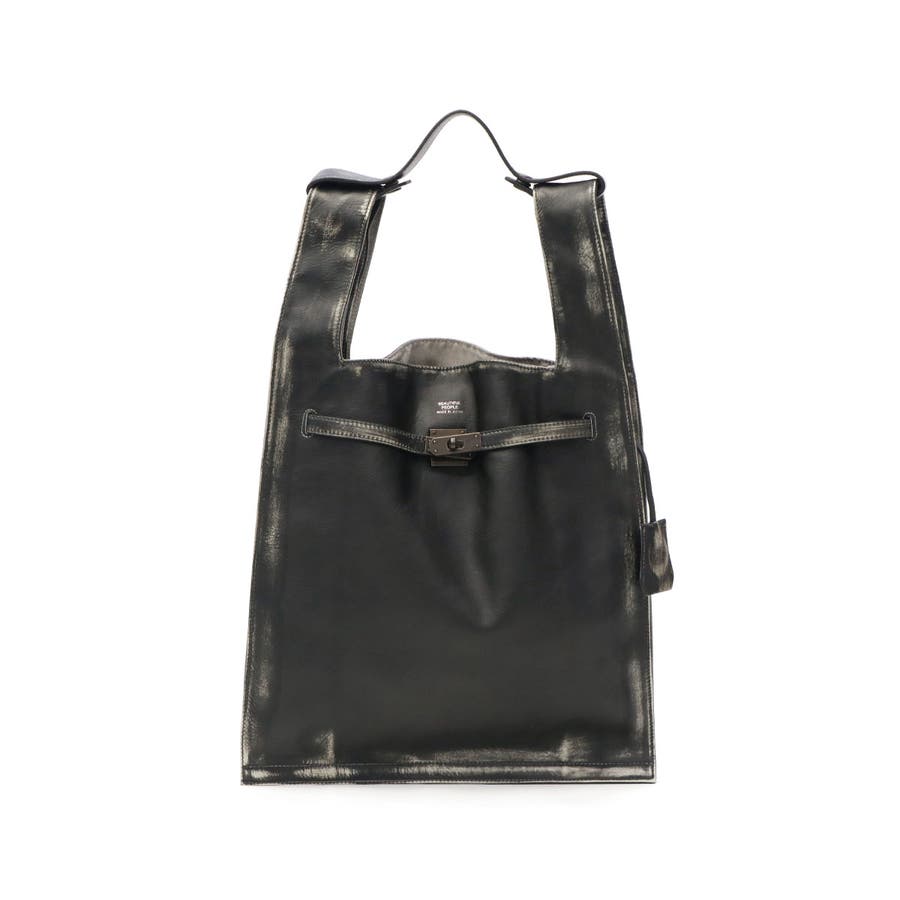 マーケットバッグをモチーフとしたデザインと金具の組み合わせが特徴のトートバッグ。「高価」と「安価」、「理想」と「現実」など相反する要素を融合した、個性が光るデザインに仕上がっています。ビンテージ感を表現するため手作業で一つ一つ色を落とし、異なる表情を実現。面白味のあるデザインとこだわりの詰まった素材で、ブランドの世界観を存分に表現しています。