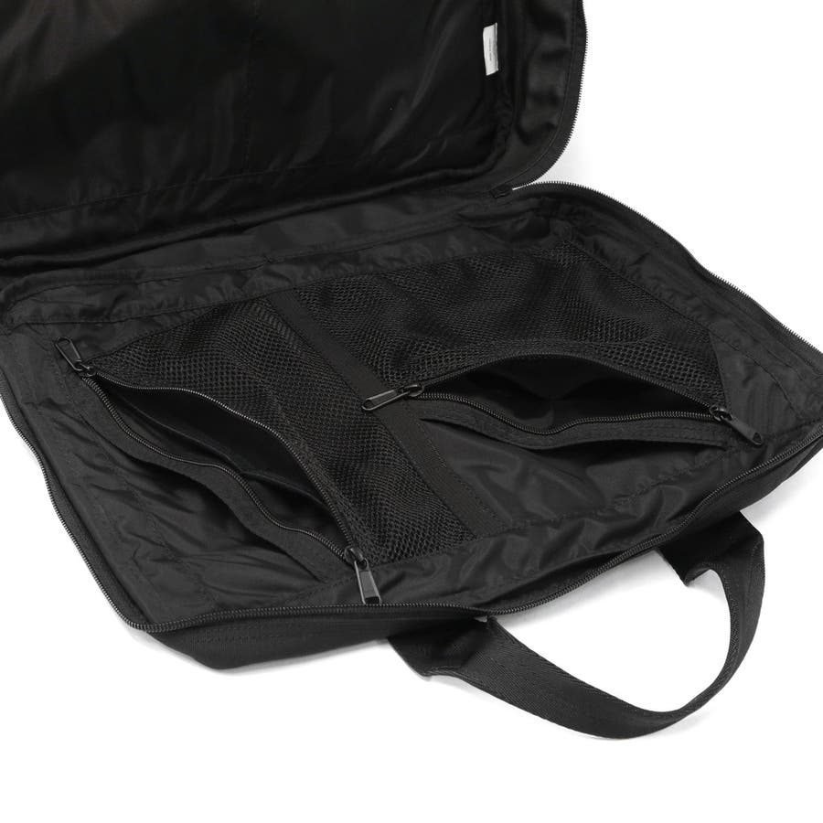 あえてショルダーストラップは搭載せず、スーツのシルエットを崩さない手持ちブリーフ・バックパックの2WAY仕様にモデルチェンジしました。どちらの状態でもよりクイックなアクセスを可能にした内装が魅力。小分けにしたアイテムに自然と手が伸びるよう、ポケットの配列にも趣向を凝らしています。