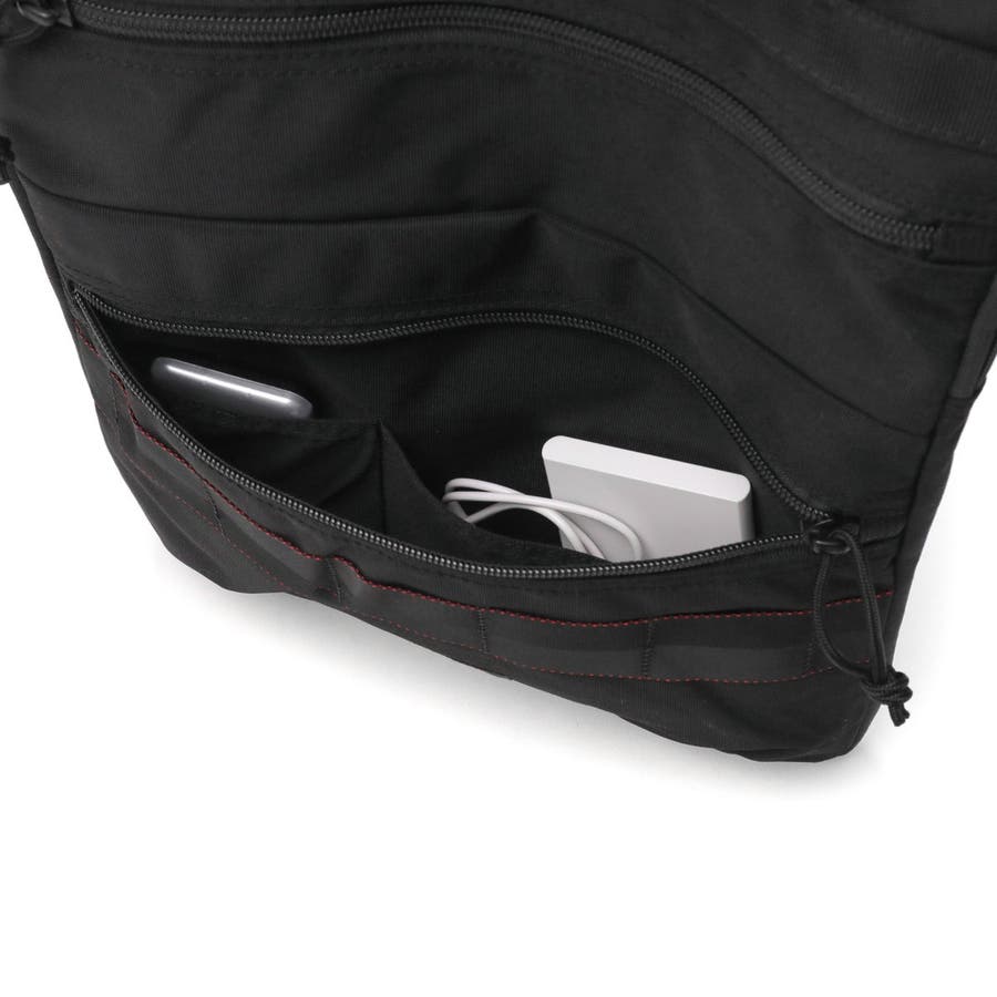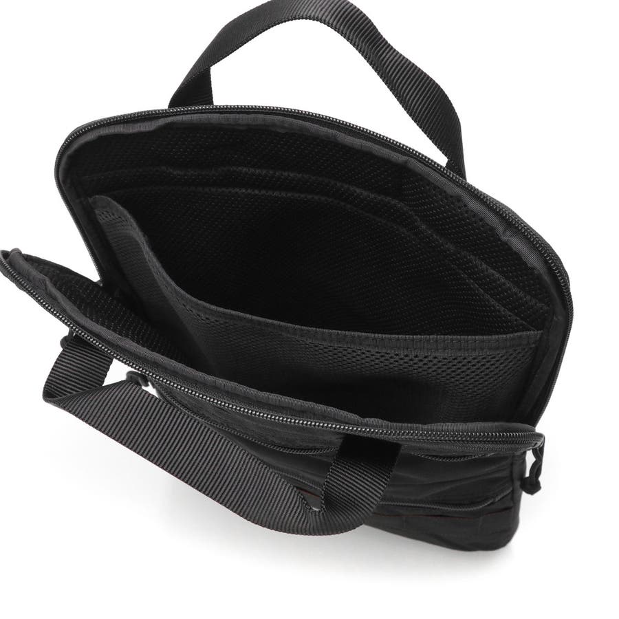 縦糸にリサイクルナイロン糸、緯糸に中空糸を使用した完全オリジナル素材をメインに使用。軽量でありながら、ハリコシのある素材感が特徴的です。さらに、リップストップナイロンにある格子柄が目立たない仕上がりで、ビジネスなどのフォーマルなスタイルとも合わせやすいルックスとなっています。