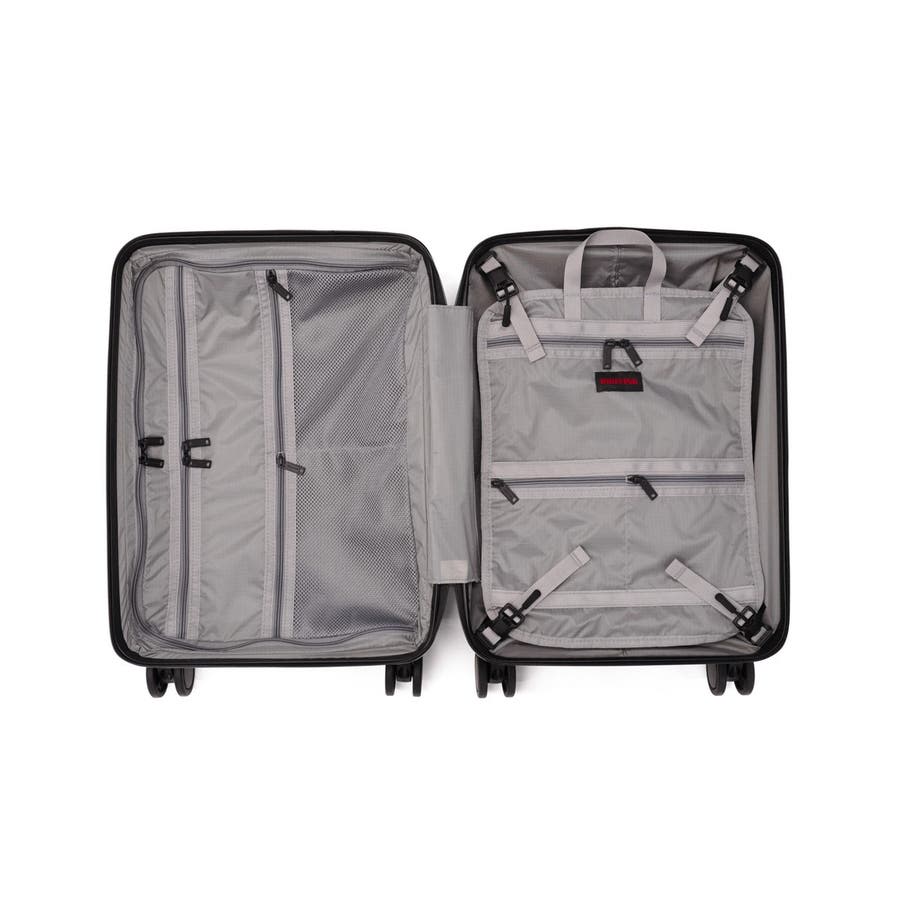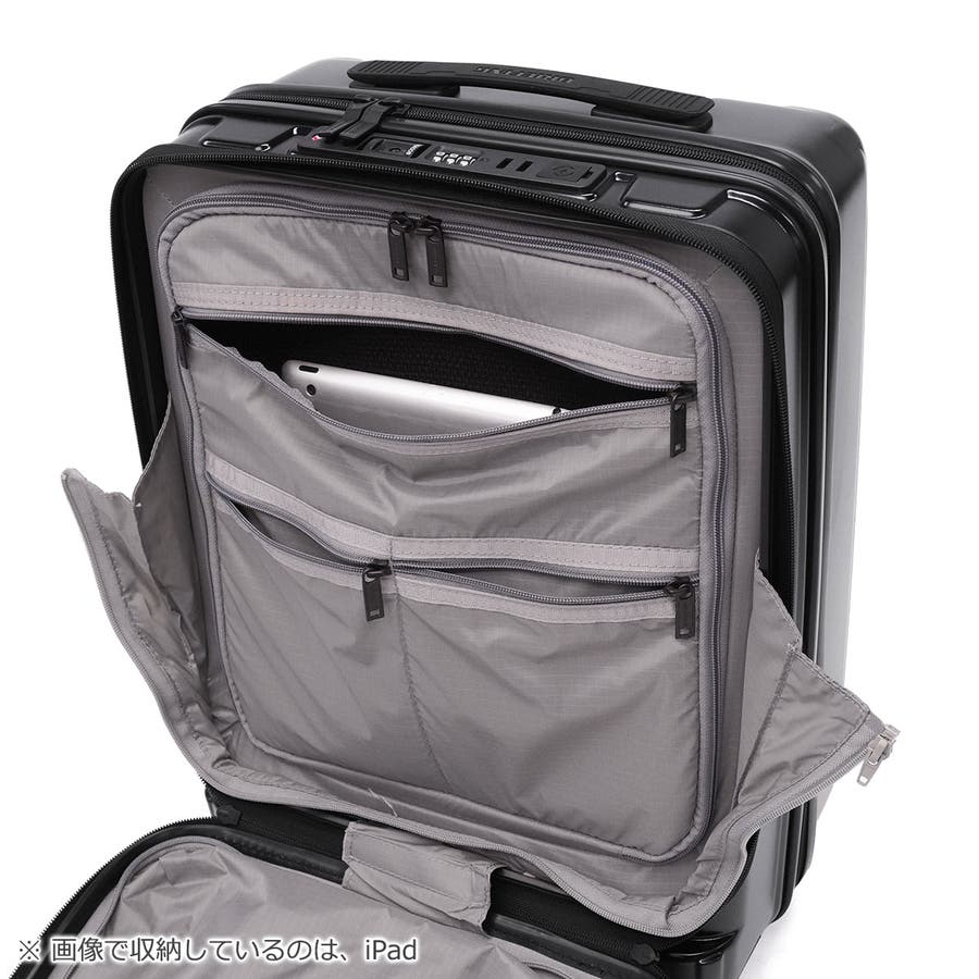 3~4泊に適した、フロントオープンポケット付きのスーツケースです。ボディには、耐久性に優れた素材を使用。マットな質感にすることで、傷や指紋などが目立ちにくい仕様に。仕切りやUSBポートなどの機能性を備え、BRIEFINGらしい無骨さと機能美が融合したモデルに仕上がりました。