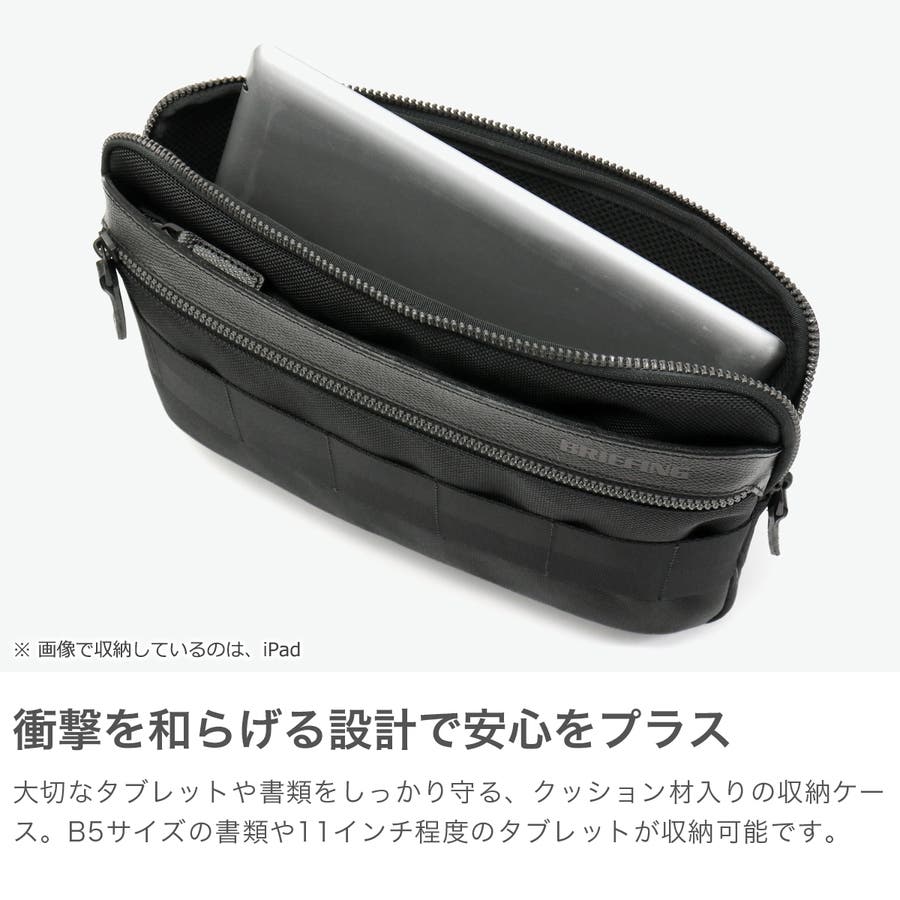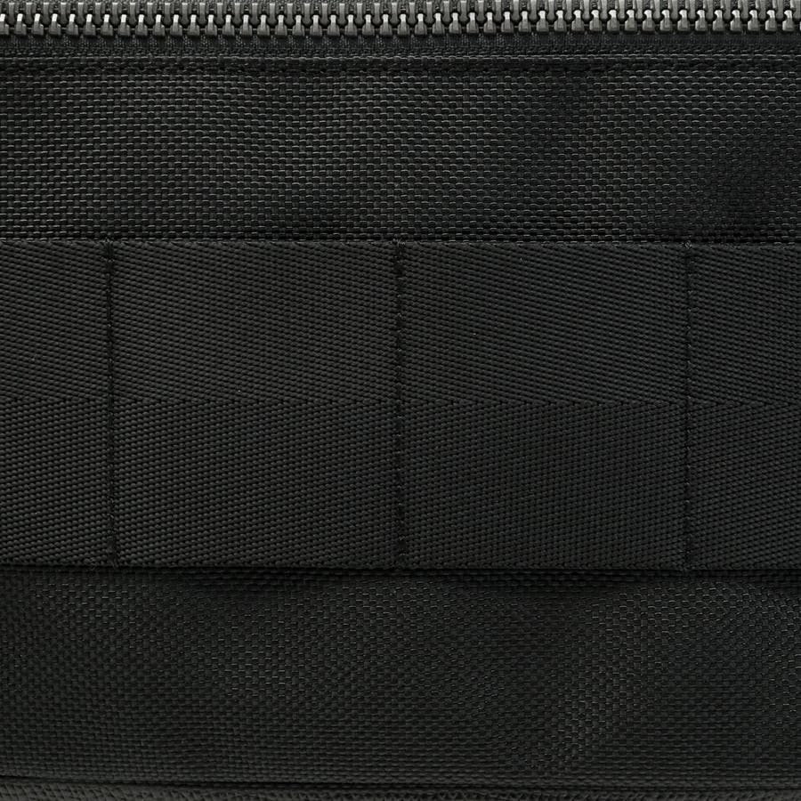 ブランドの象徴であるレッドラインをあえて使わず、ワントーンで仕上げたシックな表情が魅力の「FUSION COLLECTION」のタブレットケース。11インチ程度までのデバイスが収納できるサイズ感で、フロントポケットにはスマートフォンはもちろん、充電器やケーブルなど細かなアイテムも整理可能です。ウォータープルーフ加工を施したレザーと高強度ナイロンのコンビネーションが、都会的で洗練された印象を引き立てます。