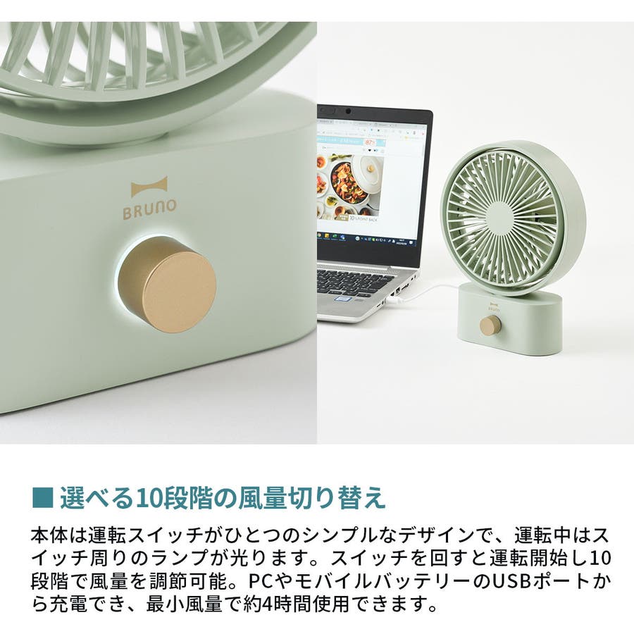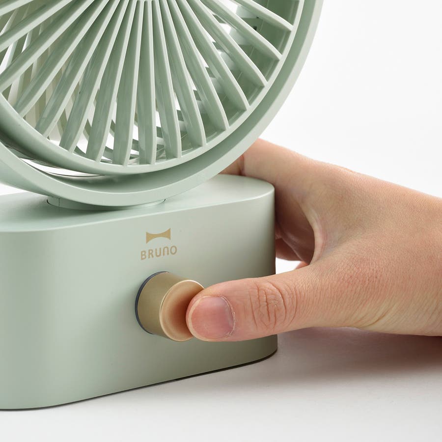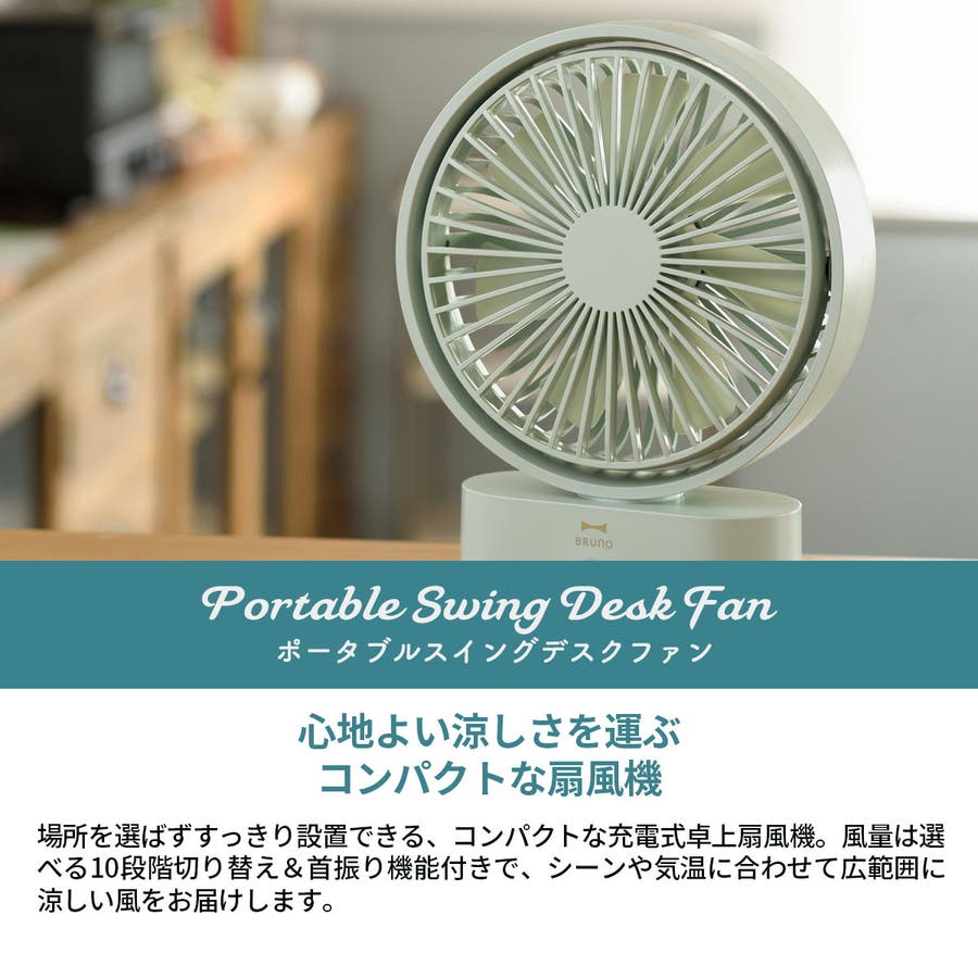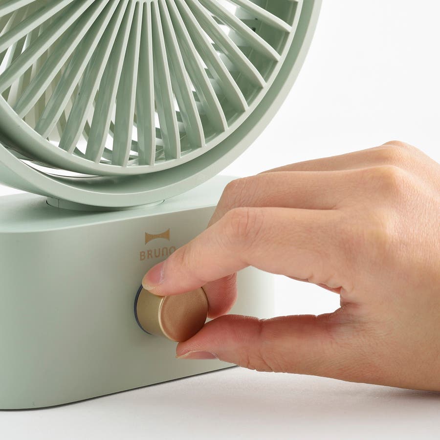 場所を選ばずすっきり設置できる、コンパクトな充電式卓上扇風機。風量は選べる10段階切り替え&首振り機能付きで、シーンや気温に合わせて広範囲に涼しい風をお届けします。