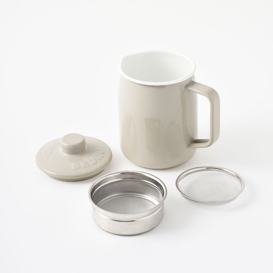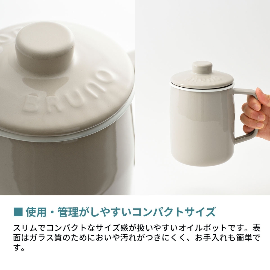 富士ホーローとコラボした、スリムでコンパクトなオイルポット。場所を取らず、取り回しが簡単に行えるのが特徴です。ステンレスの濾し網(粗目・細目の2段階)で細かい揚げかすもキャッチして、きれいなオイルをキープします。