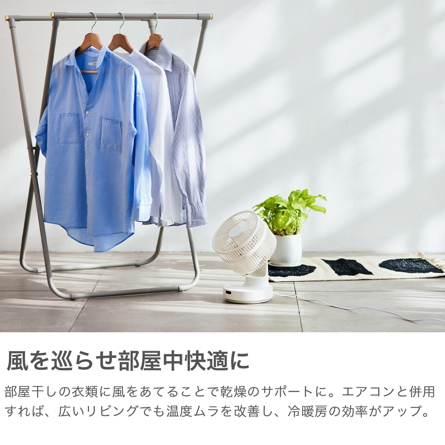 DCモーター搭載で、静音性と省エネ性能を兼ね備えた360°全方位対応のサーキュレーター。コンパクトながらパワフルな送風を実現し、左右360°、上下90°の首振り機能で空気を効率よく循環。冷暖房効率の向上や衣類乾燥にも活躍します。10段階の細かな風量調整が可能で、リモコン操作にも対応。前後ガードと羽根は工具不要で取り外しでき、水洗いも可能です。省スペース設計で、一年を通して快適な空間をサポートします。