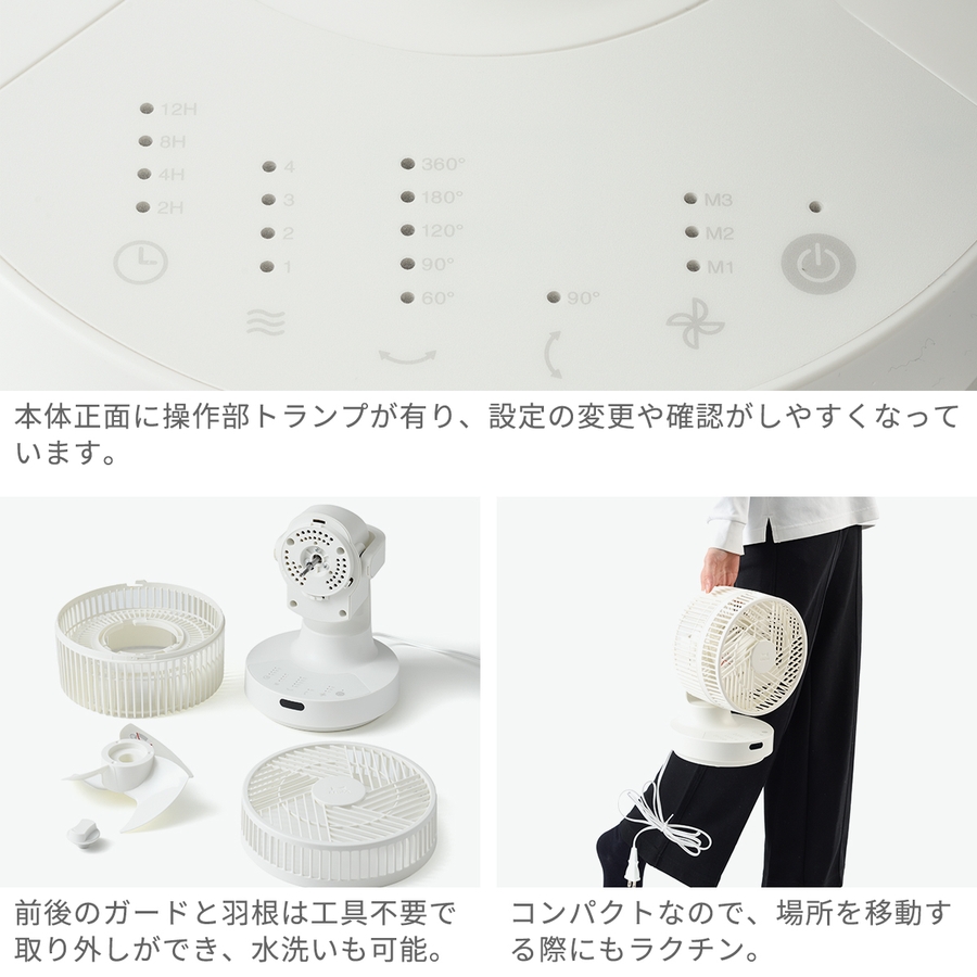 M1(空気循環):左右首振り360°、上下首振り90°、風量4