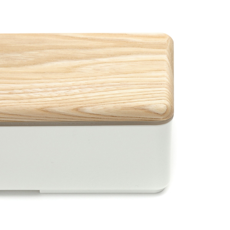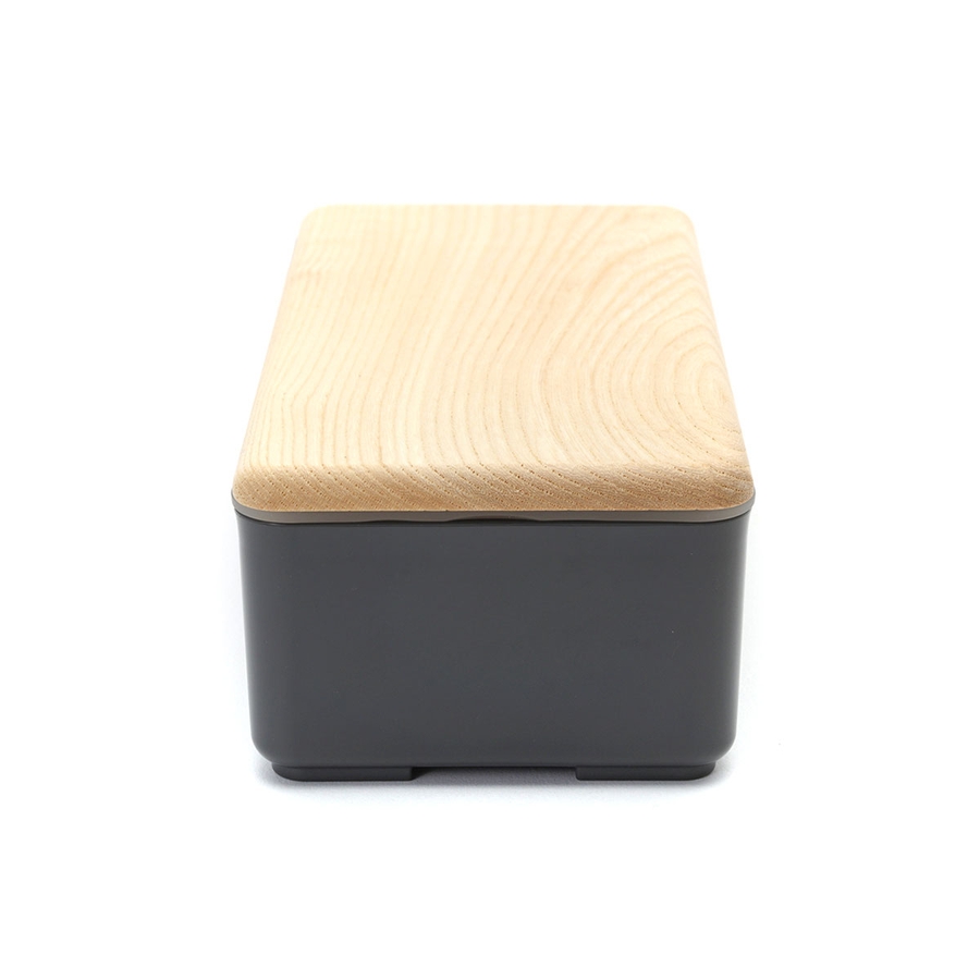 北海道産の栓の木を蓋に使った、ランチにちょうどいい500mlサイズのお弁当箱。栓の木の1点ずつ異なる木目と、天然木ならではの触り心地が堪能でき、毎日の昼食時間が楽しみになります。本体は樹脂できているため、電子レンジにも食器洗浄機にもかけられ、木のお弁当のような手間暇かけたお手入れは不要。自然を感じられる木と、機能性に特化した樹脂の"いいとこ取り"を詰め込んだお弁当箱です。