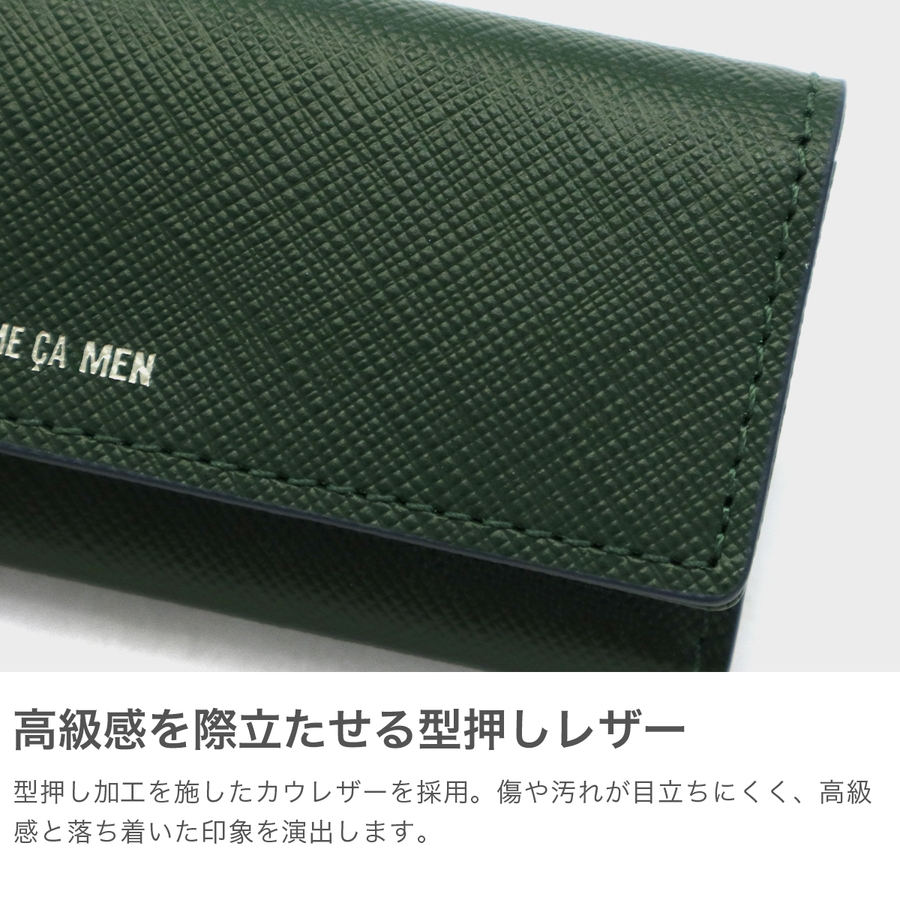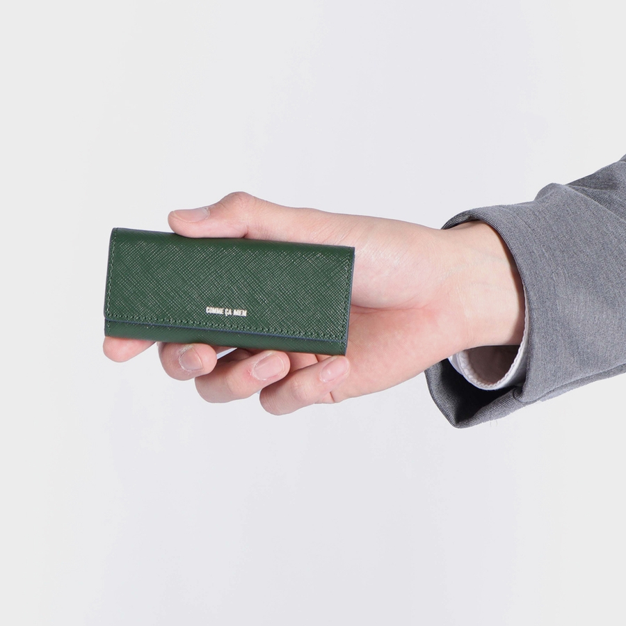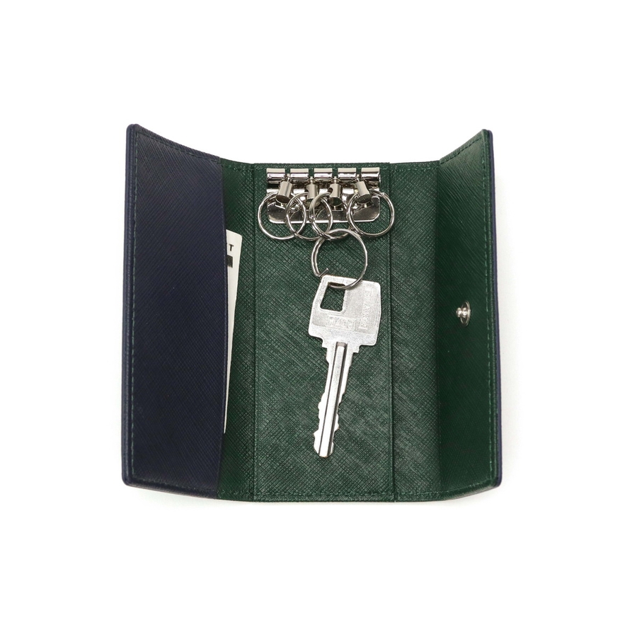 素材には型押しのカウレザーを使用し、上品さと傷のつきにくさを実現。シンプルなデザインながらも、サイドから見えるカラー使いが遊び心をくすぐり、毎日愛用する鍵をスマートに持ち運ぶことができます。