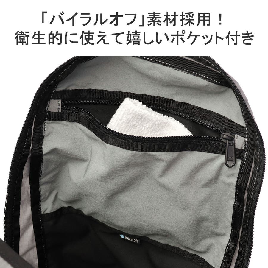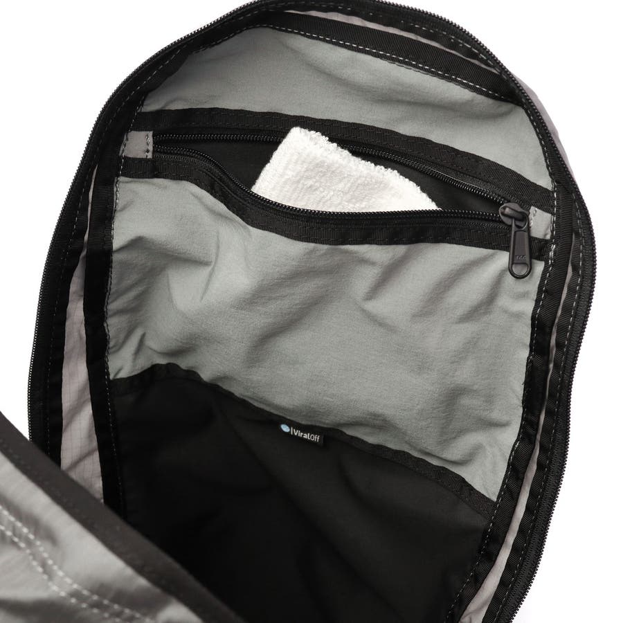 アウトドアからタウンユースまで幅広く活躍するバックパック。A4サイズ対応でデイリーユースに便利なデザインが魅力です。本体内側には表面に付着したウイルスを減少させる「バイラルオフ」素材を採用したポケットを設けています。また、雨の日でも安心できる撥水ファスナーを採用。さらに、生地には汚れにくいテフロン加工を施しているため、毎日気兼ねなく愛用して頂けます。