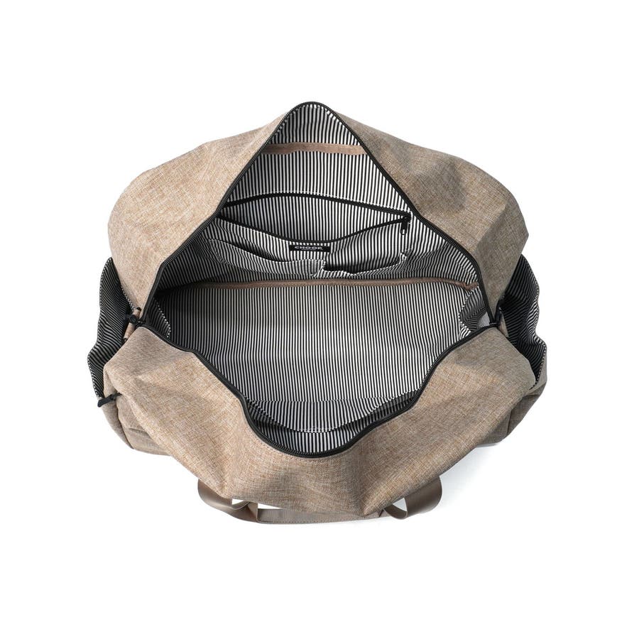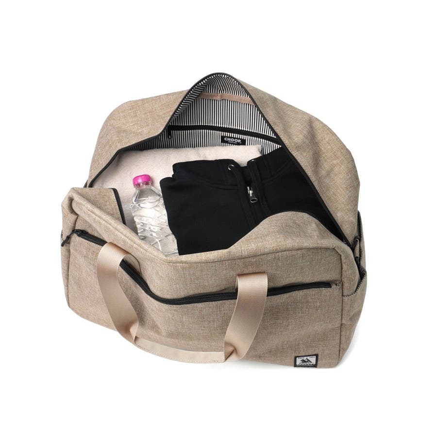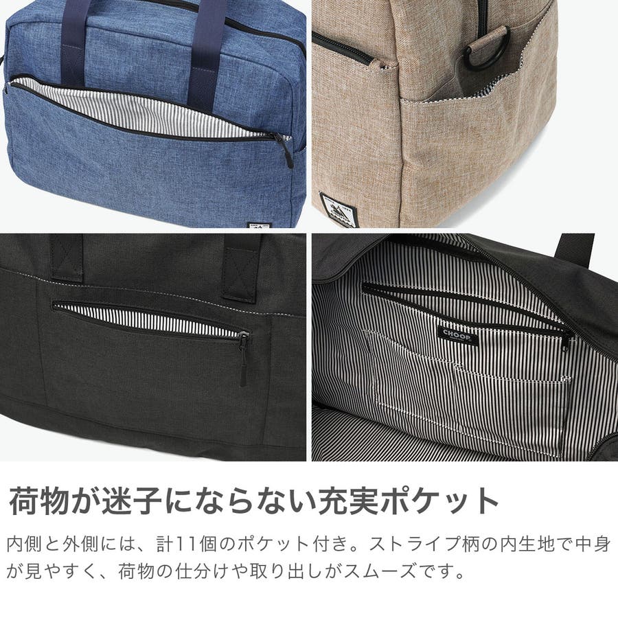 1994年に人気ブランドとして定着していた"リスのマーク"の『CHOOP/シュープ』。こちらは、約40Lの大容量で荷物が多い日にも安心して使えるボストンバッグです。外側に4つ、内側に7つのポケットを備え、衣類や小物などをすっきりと収納できます。軽量なポリエステル素材に撥水加工を施しているため、急な雨にも安心して使えます。シンプルで洗練されたロゴマークが、落ち着いた雰囲気にさりげないポイントを添えてくれます。