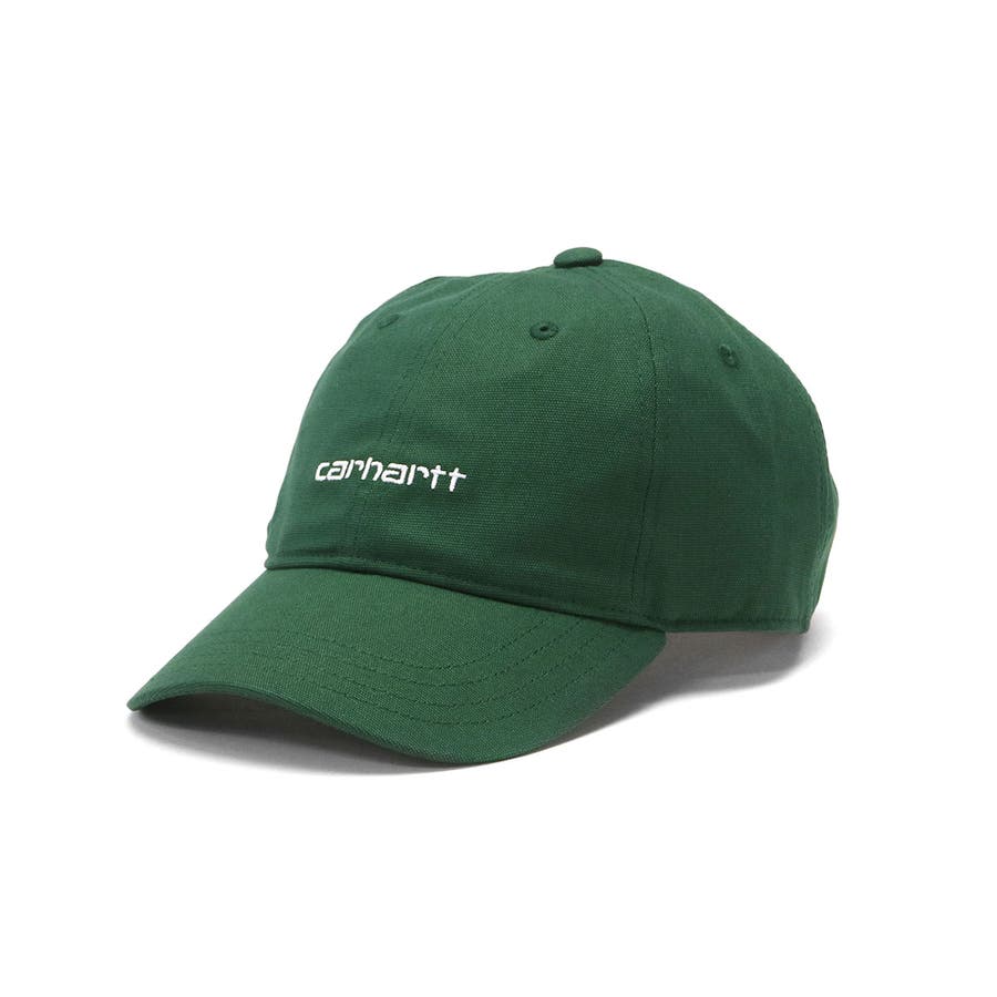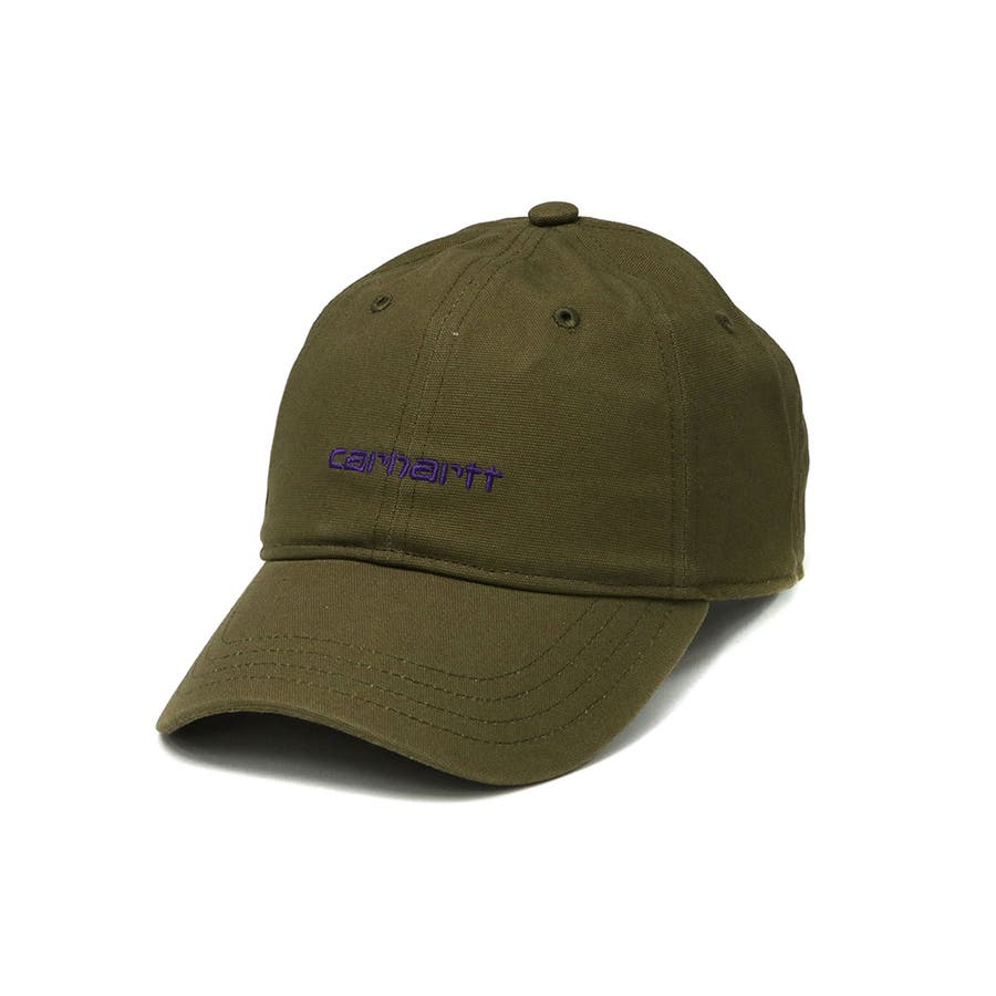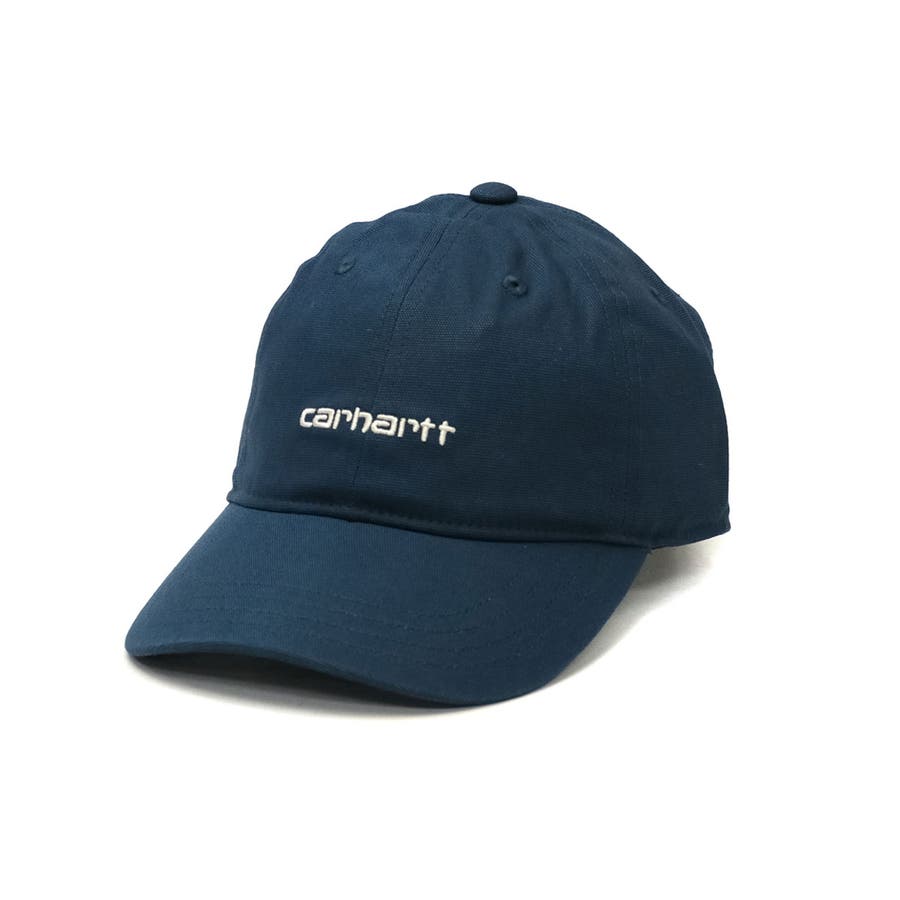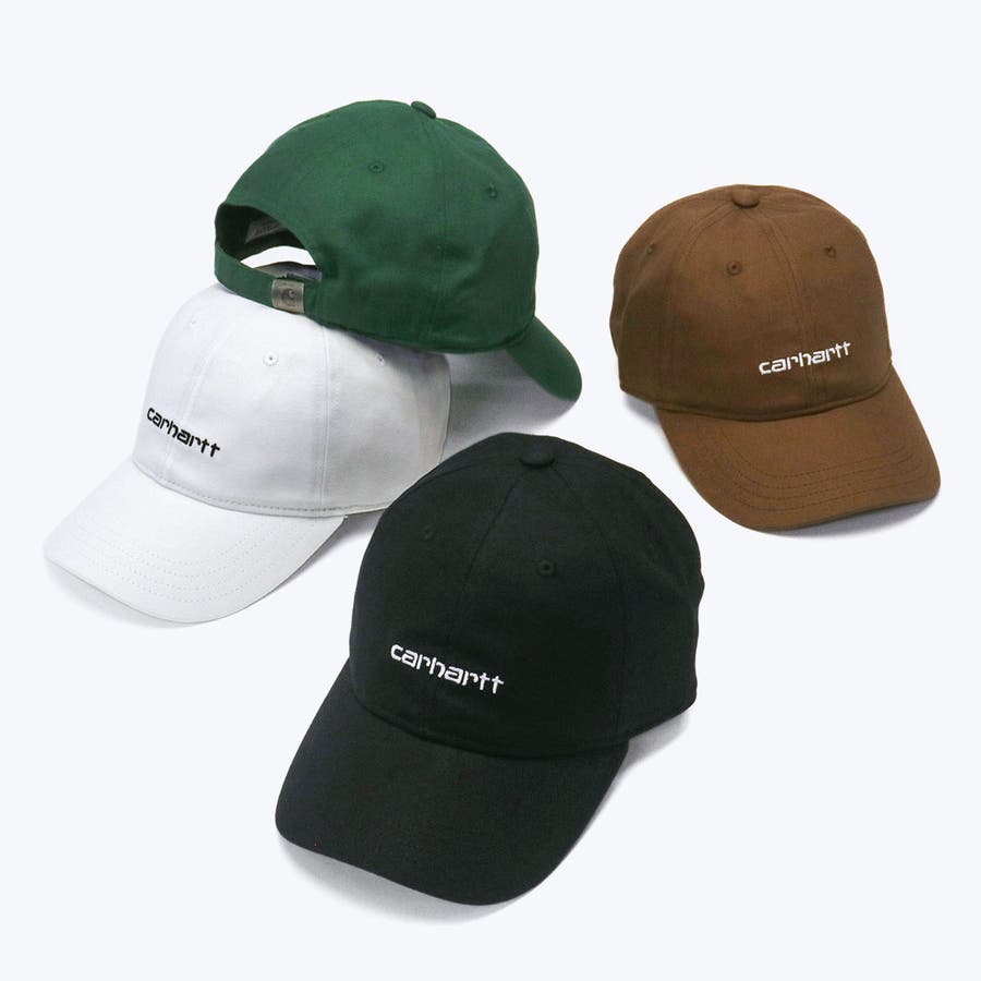 キャンバススクリプトキャップは、裏地なしの6パネルスタイルで、しっかりとしたカーブのあるピークが特徴です。コットンキャンバス生地を使用し、ガーメントウォッシュ加工を施し柔らかな風合いに仕上げています。フロントにはCarhartt WIP Script Logoが刺繍されており、フィット感を高めるために調節可能なストラップをバックに備えています。