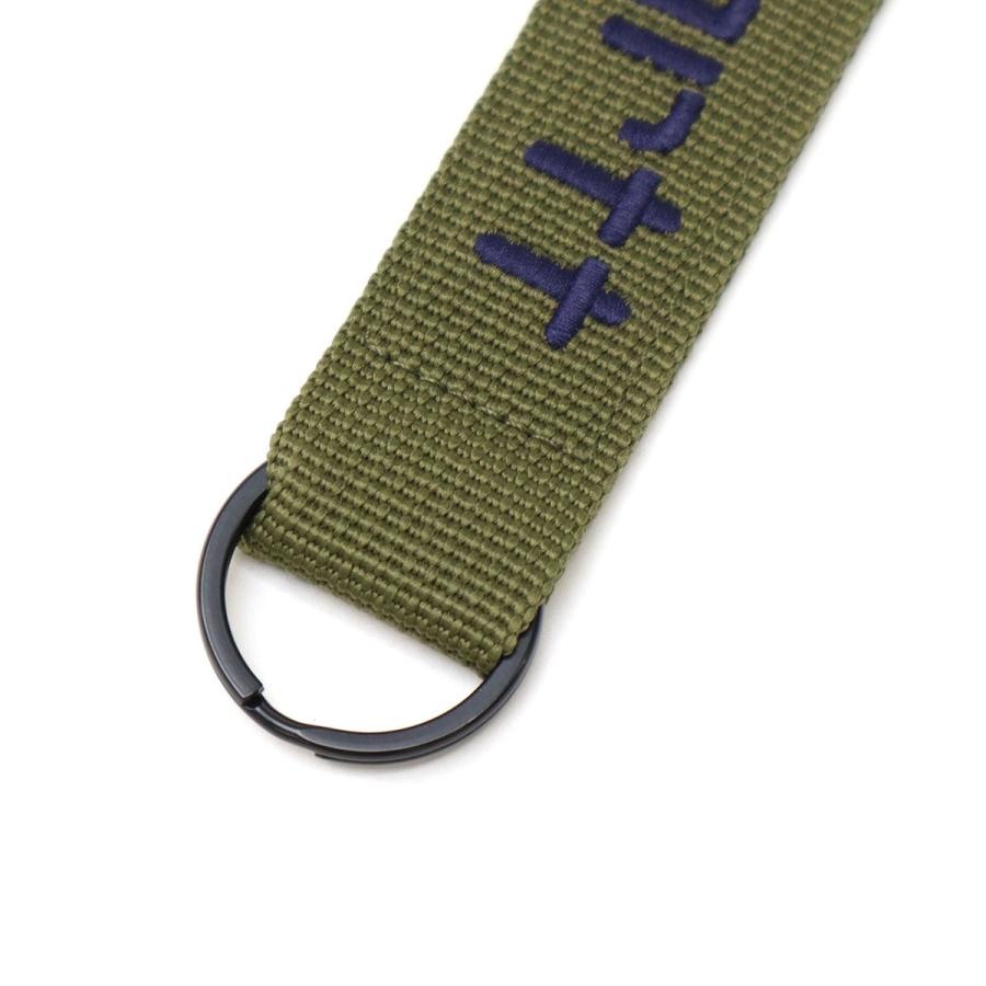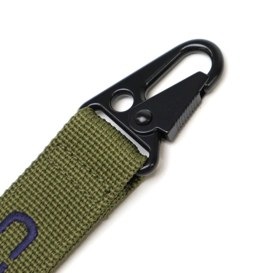 大きなロゴデザインが特徴的なキーホルダー。本体には、耐久性のあるポリエステルウェビング素材を使用。メタルフックが備わっているため、お手持ちのバッグやベルトループに引っ掛けて簡単に装着することができます。鍵をまとめたり、コーディネートのアクセントにもぴったりなアイテムに仕上がっています。