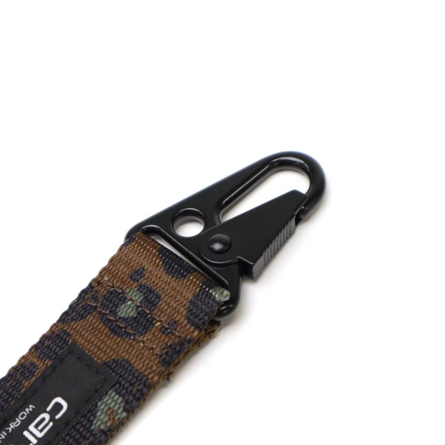 カーハートのロゴラベルがあしらわれたキーホルダー。本体には、環境に配慮されたリサイクルポリエステル素材を使用。メタルフックが備わっているため、お手持ちのバッグやベルトループに引っ掛けて簡単に装着することができます。鍵をまとめたり、コーディネートのアクセントにもぴったりなアイテムに仕上がっています。