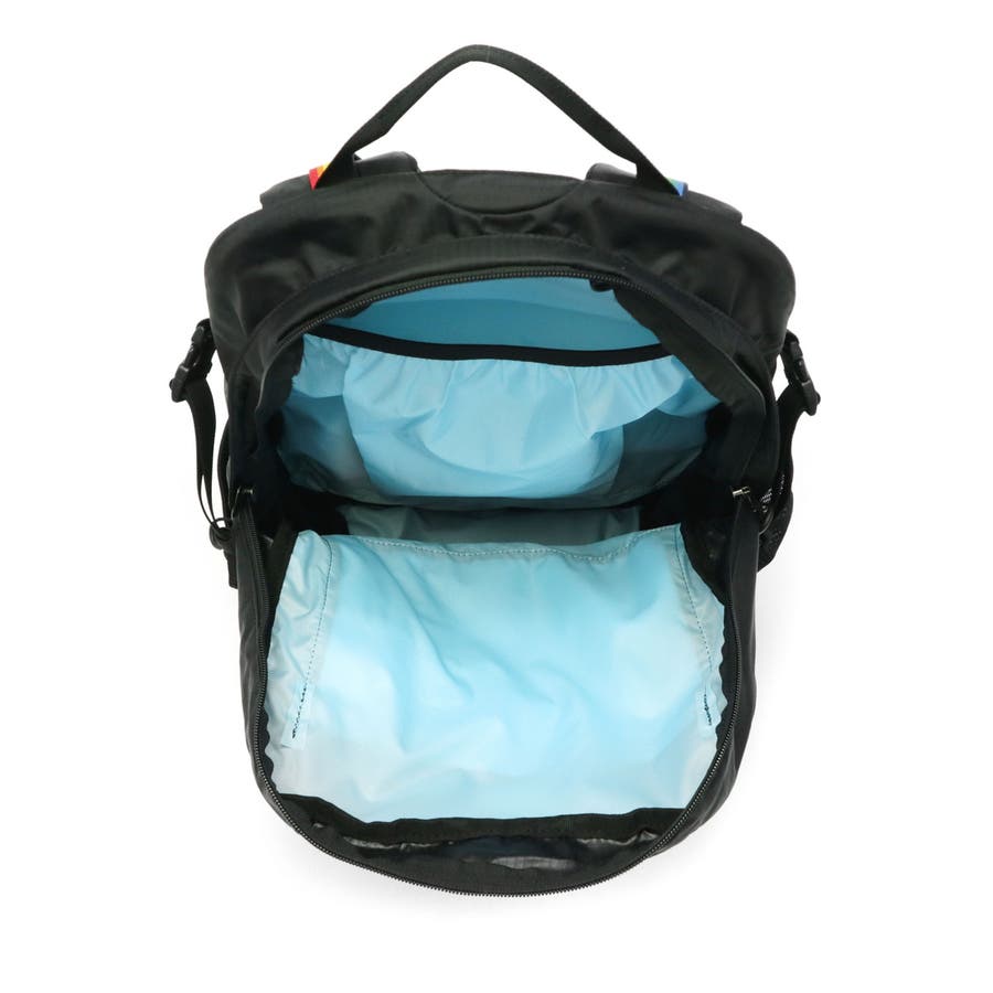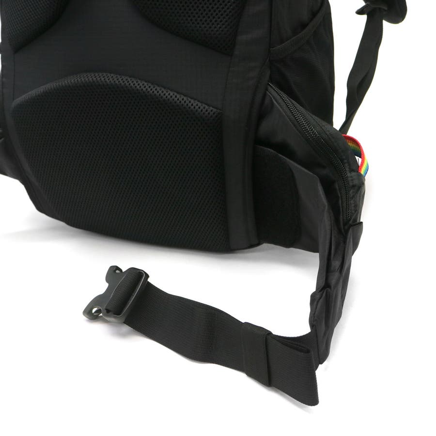 外側の両サイドには、ストレッチメッシュ素材が使われたポケットが完備され、すぐに取り出したいアイテムの収納に便利です。底面ポケットには格納式レインカバーが搭載され、急な雨にも対応できます。背面はエアメッシュ+EVAフォーム仕様が施され、湿気を逃し快適な背負い心地を実現。ホイッスル付きチェストストラップを採用し、いざという時役立ちます。