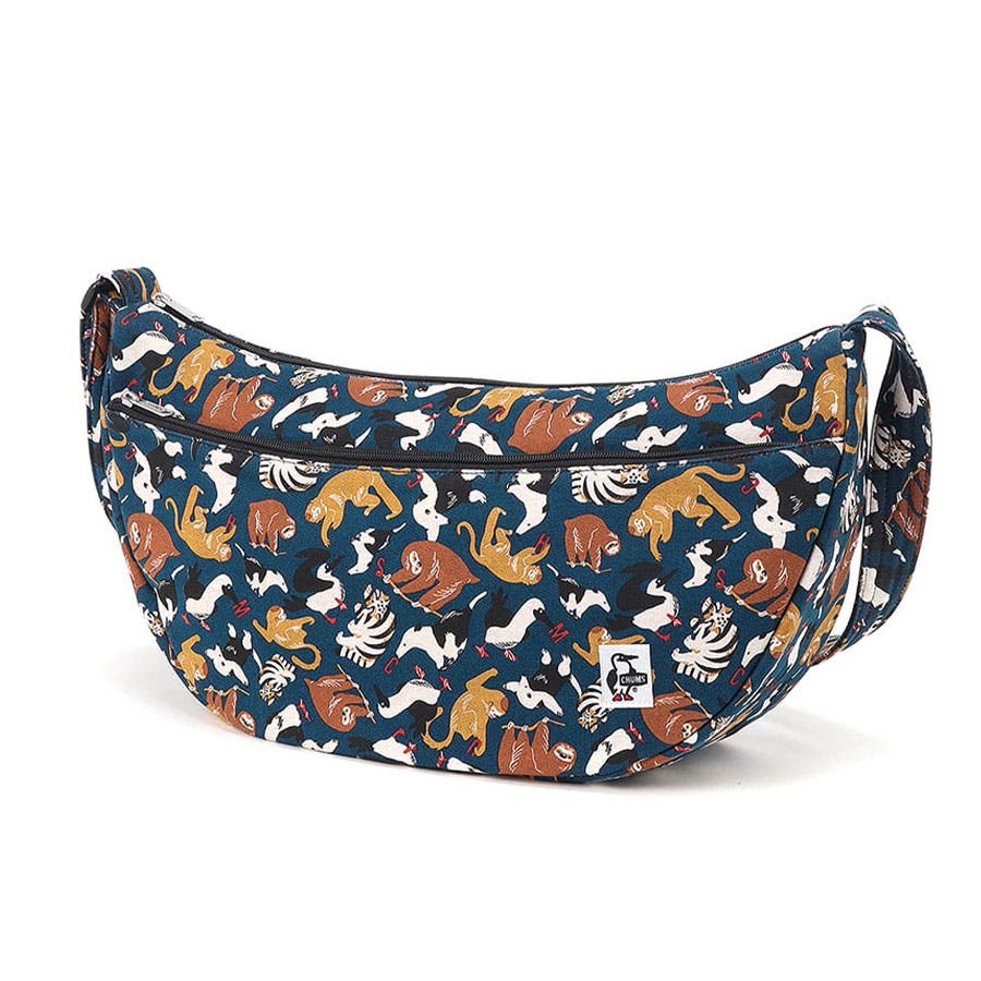 体に沿う形状で動きやすく収納力も抜群、CHUMS定番のバナナショルダーバッグ。B5サイズや500mlペットボトルも収納可能で普段使いにおすすめです。柔らかなスウェット生地の表面には撥水、撥油、防汚性能を持った「Asahi Guard E-SERIES」加工剤を採用。水や汚れに強く、アウトドアにもぴったりです。