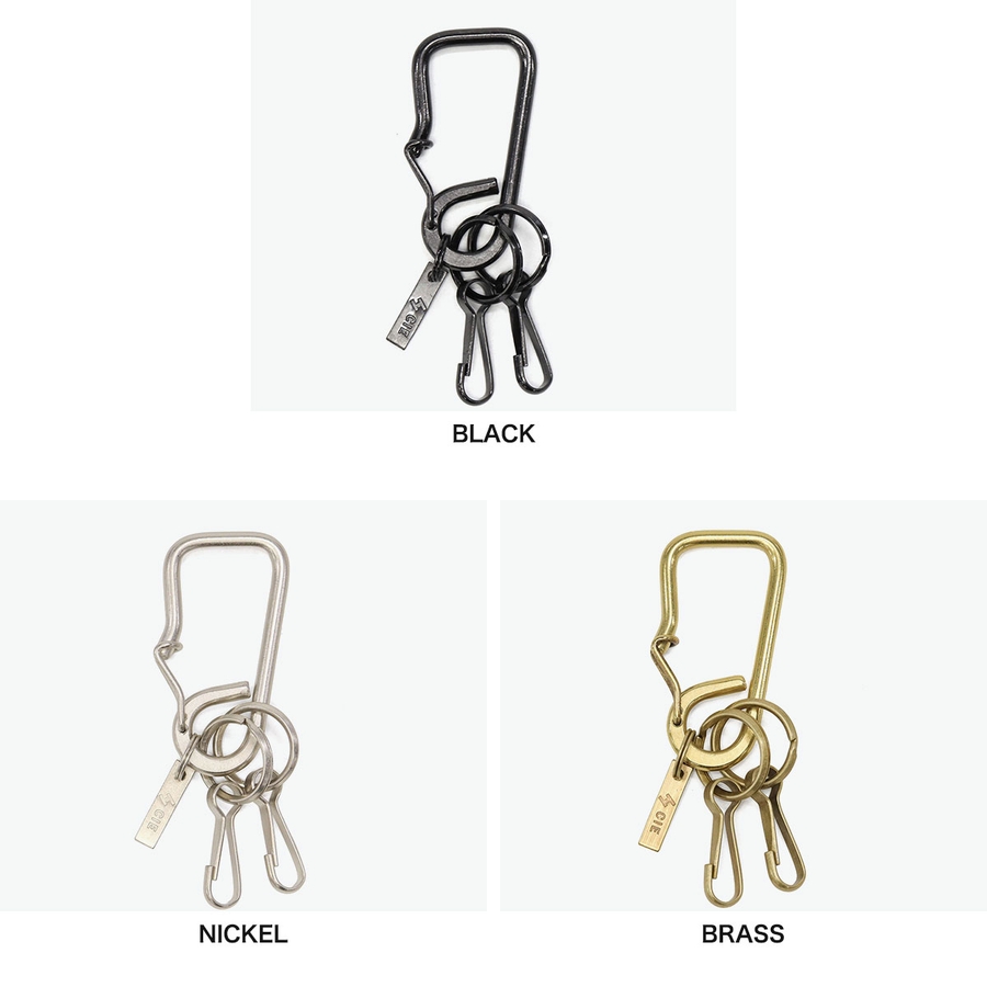 master-piece(マスターピース)やAS2OV(アッソブ)を経たデザイナーが手がける注目の気鋭ブランド『CIE/シー』。こちらは大阪の町工場の職人技による真鍮材の曲げにフォーカスしたシリーズ『BRASS KEY FOB』のカラビナ型キーホルダーです。カラー展開は真鍮生地のブラス色と、表面にメッキを施したニッケル色、ブラック色の3色展開。真鍮材の味を生かすためクリアー加工は施さず、経年変化をお楽しみいただけます。専用の包装箱が付属し、プレゼントやギフトにもおすすめです。