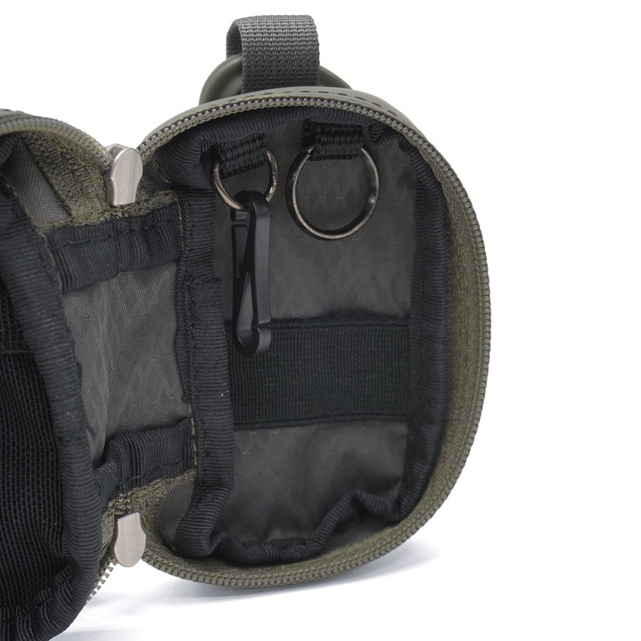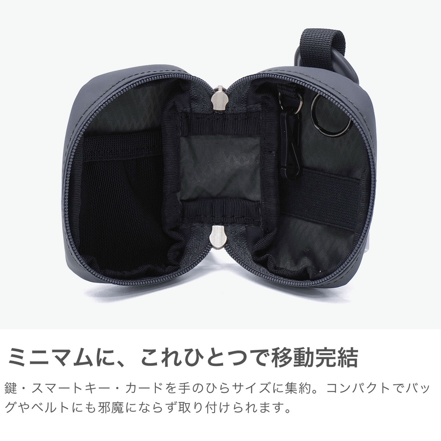 master-piece(マスターピース)やAS2OV(アッソブ)を経たデザイナーが手がける注目の気鋭ブランド『CIE/シー』。こちらは、防水・撥水性に優れた素材を使用したSサイズのキーケースです。手のひらに収まる小ぶりなサイズですが、スマートキーの収納も可能◎。内装には、ちょっとした小物類も入れられるポケットを装備しており、マルチに使えるアイテムです。カラビナ付きで、バッグやベルトループに装着して、アクセサリー感覚でお使いいただけます。