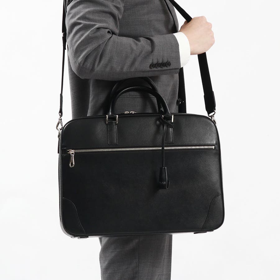 本体は、A4サイズが難なく収納できるサイズ感。内外に7つのポケットを設けており、荷物をすっきりと整理できます。底面には、ダメージ軽減と安定した自立を支えるレザーパッチを配置。優美な雰囲気を崩さないよう、金具ではなくレザーを使用しているところがポイントです。また、握りやすいように設計されたハンドルとしっかりとこしのあるショルダーストラップで2WAY仕様に。快適な使い心地を追求し、ビジネスに欠かせないスペックを備えた仕上がりとなっています。