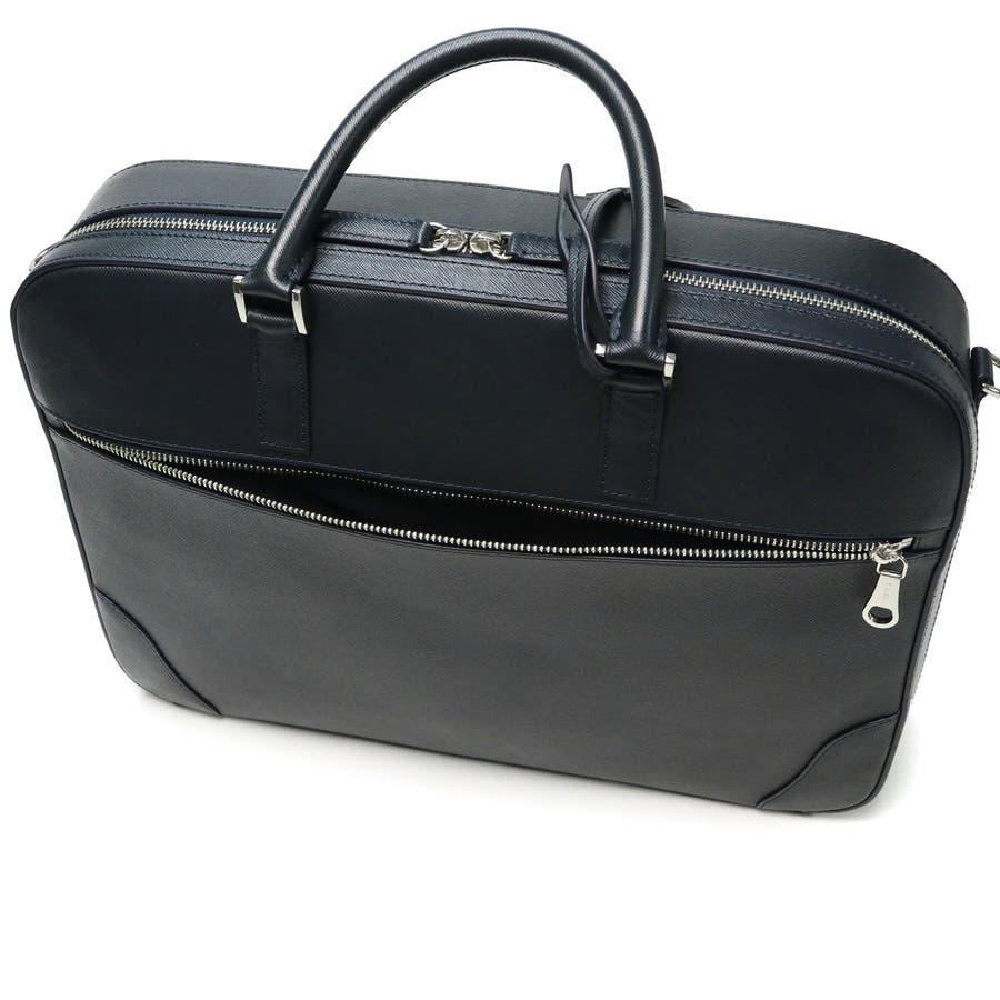 艶やかで張りのあるサフィアーノレザーを使用した「グレン2」シリーズのブリーフケース。繊細な型押しのエレガンスな表情に加え、傷・汚れや水にも強い特性を備えています。端正なスクエア型をベースに、適度な丸みを帯びたフォルムへ仕立てることで優しく洗練された雰囲気に。スマートで頼もしい、大人の品格を引き立たせるアイテムです。